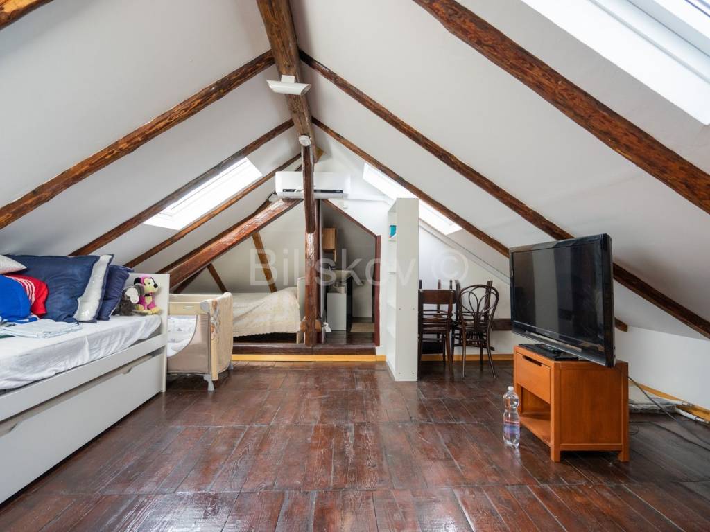 It consists of a ground floor (75 m2) which has a beautiful "open space" space that combines a living room, dining room and kitchen, a bedroom, a bathroom, two corridors and two storage rooms, and an attic (40 m2) with three smaller rooms, a storage room and toilet.