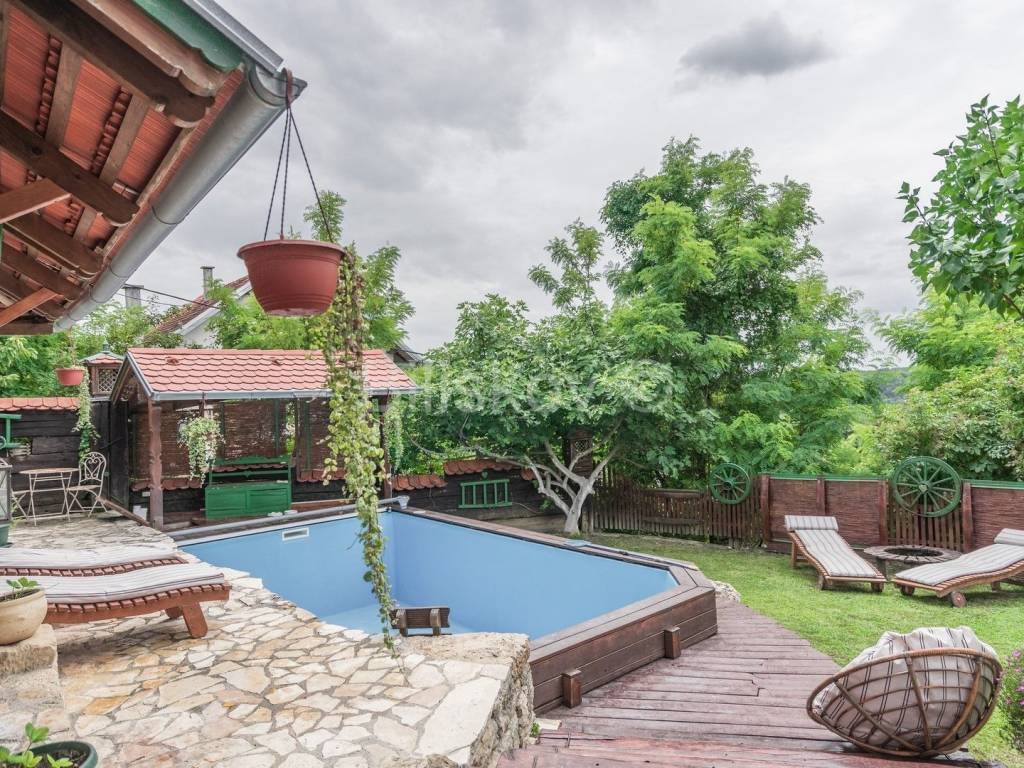 U potpunosti je izgrađena od drveta, a sastoji se od prizemlja, kata i potkrovlja s pripadajućim lođama i balkonima s kojih se pruža predivan pogled na prirodu. Vrtnim dijelom dominira bazen s prostorom za odmaranje, te autohtona sjenica s roštiljem. U dijelu za parkiranje nalazi se prostrana alatnica i spremište za odlaganje.