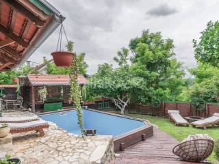 Samostojeća luksuzna vikend kuća stambene površine 250 m2 koju okružuje veliki uređeni vrt, bazen i jacuzzi, sjenica i natkriveni dio za parkiranje, sagrađena 2012. godine na parceli od 430 m2.