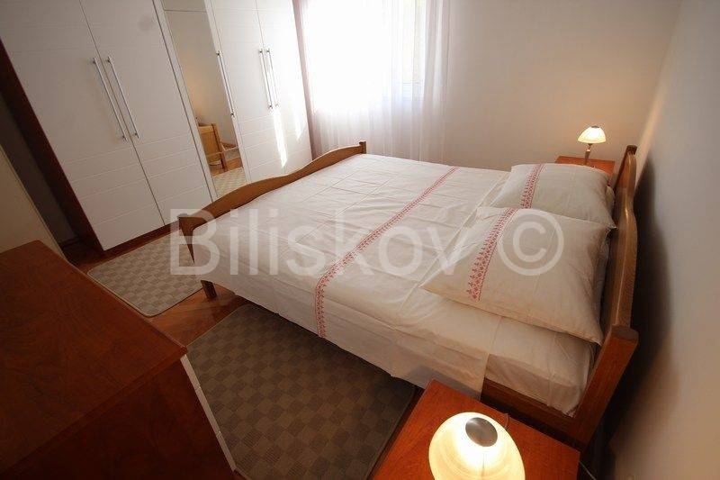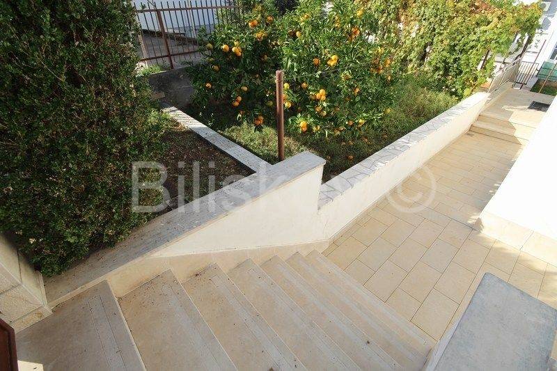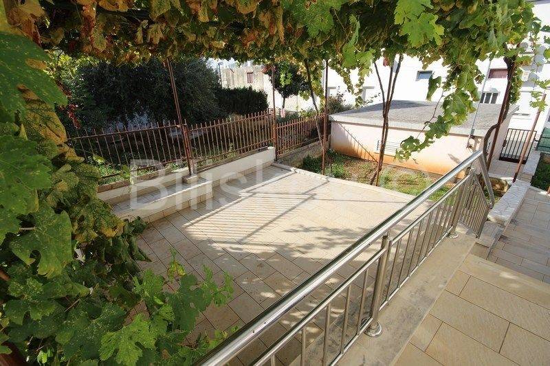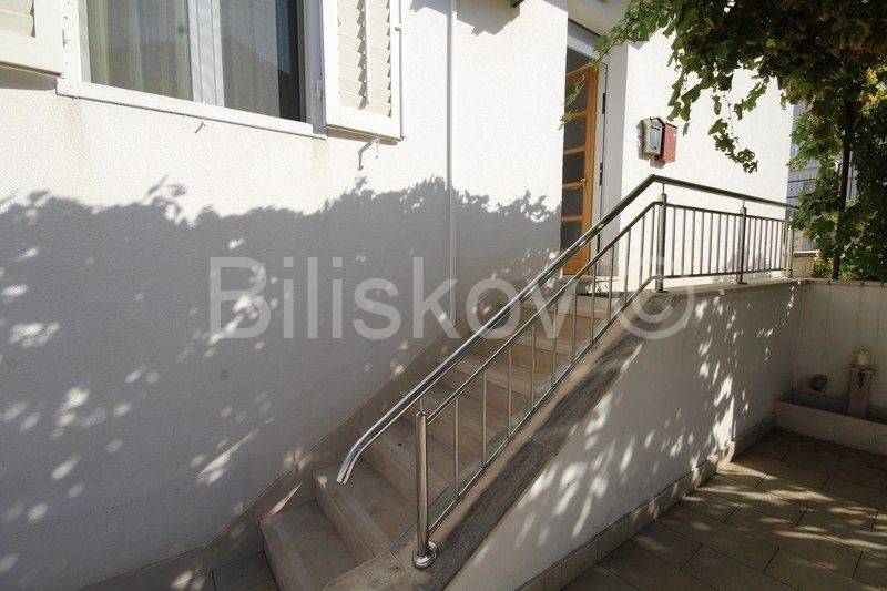 Trogir - center, comfortable three bedroom apartment of 84 m2 with a garage, located on the ground floor of a detached family house with two apartments. It consists of 3 bedrooms, kitchen with dining room and living room, bathroom and hallway. The garden is cultivated and the large terrace provides complete intimacy covered with vines. The apartment also has a detached garage with electric doors. It is located in a great location in a quiet street and close to all amenities and 2 marinas, so it is ideal for both living and renting, or due to the proximity of the marina as a residential and commercial building. The condominium is in the process and each apartment will be assigned a part of the garden that has a total size of 232 m2.