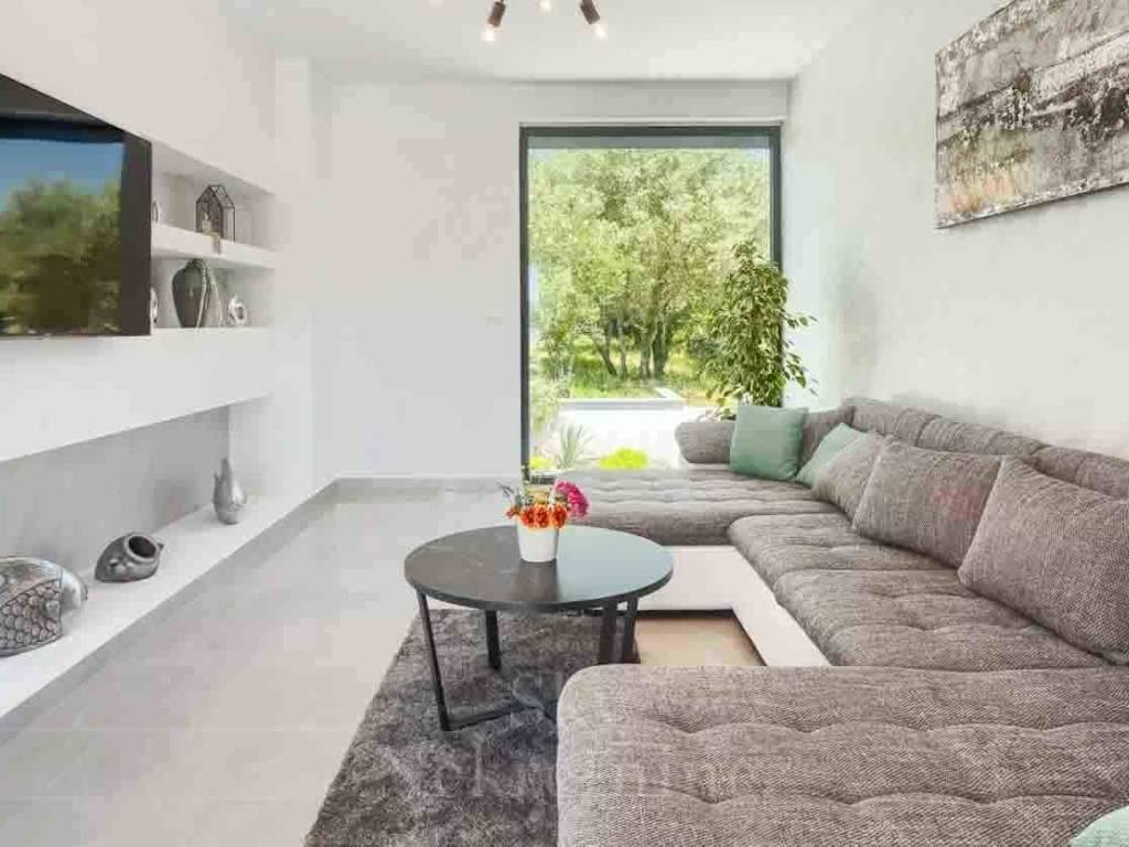 The agency Sky Real Estate presents a contemporary residence with a total area of 163.45 m2, located in a small settlement between Krk and Malinska. Just 3 km away from the coast. This exceptional property is situated on a spacious plot of 1150 m2. The property also includes an additional space of 36.5 m2.