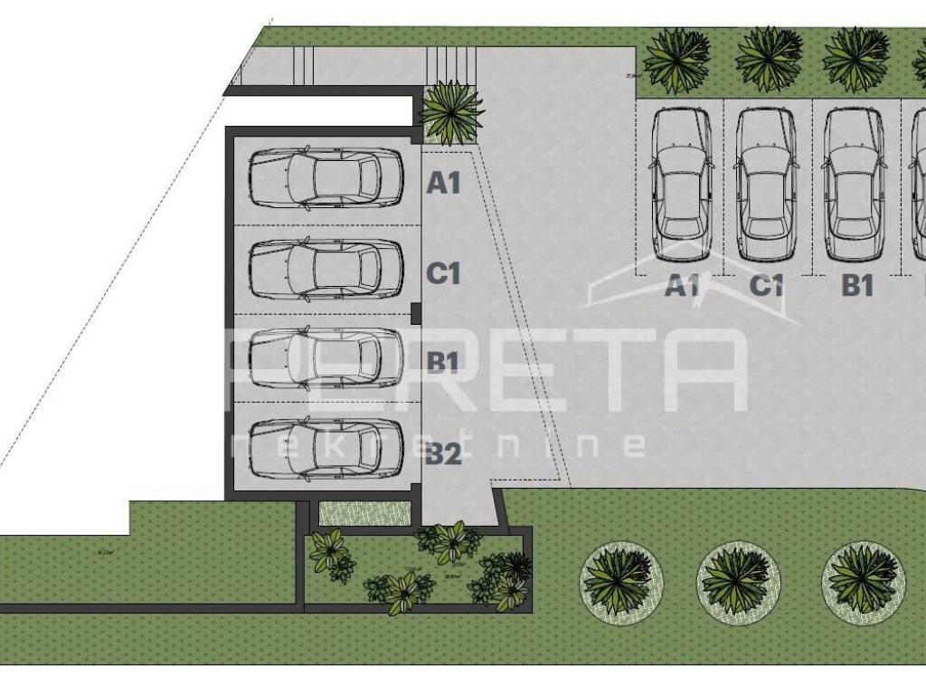 Svaki stan dolazi sa jednim garažnim i jednim vanjskim parkirnim mjestom.