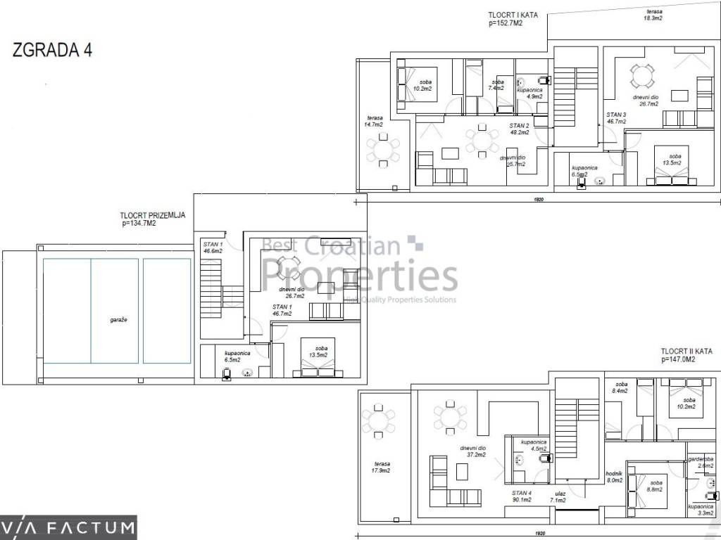 Ekskluzivno novo naselje s pet moderno projektiranih stambenih zgrada (Z1 Z5), svaka s četiri stana. Svi stanovi imaju dva parkirna mjesta, a ovisno o poziciji dvorište ili krovnu terasu. Izvedba visokog standarda, s naglaskom na energetsku učinkovitost, udobnost i kvalitetne materijale.