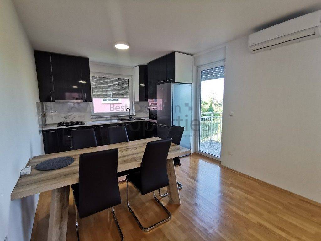 Stan se sastoji od ulaznog hola, prostranog dnevnog boravka s blagovaonicom i kuhinjom, dva balkona, spavaće sobe, te kupaonice s wc-om. Kuhinja je opremljena svim potrebnim uređajima (perilica, pećnica, napa, hladnjak) , a u kupaonici je perilica rublja.