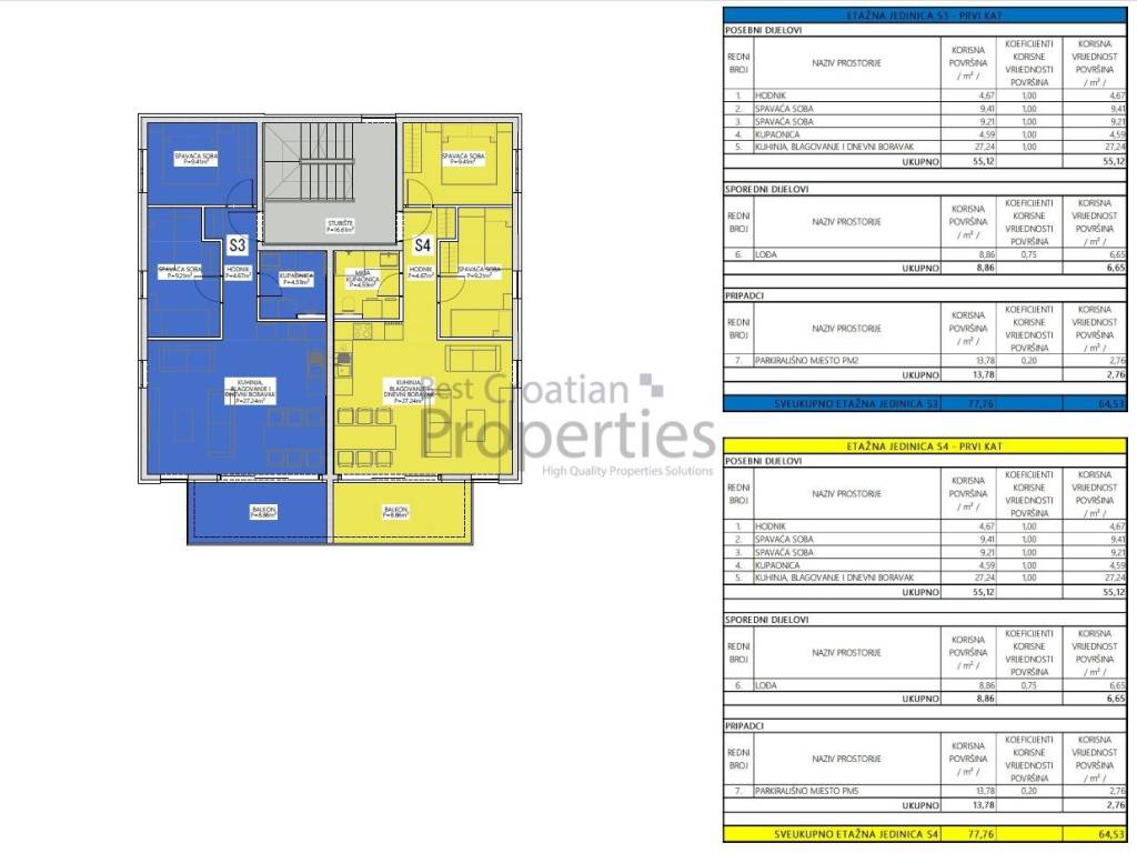 Na prodaju je atraktivan dvosobni apartman smješten na prvom katu u suvremenoj, kvalitetno građenoj stambenoj zgradi s ukupno šest stanova, na mirnoj i traženoj lokaciji u Povljani na otoku Pagu.