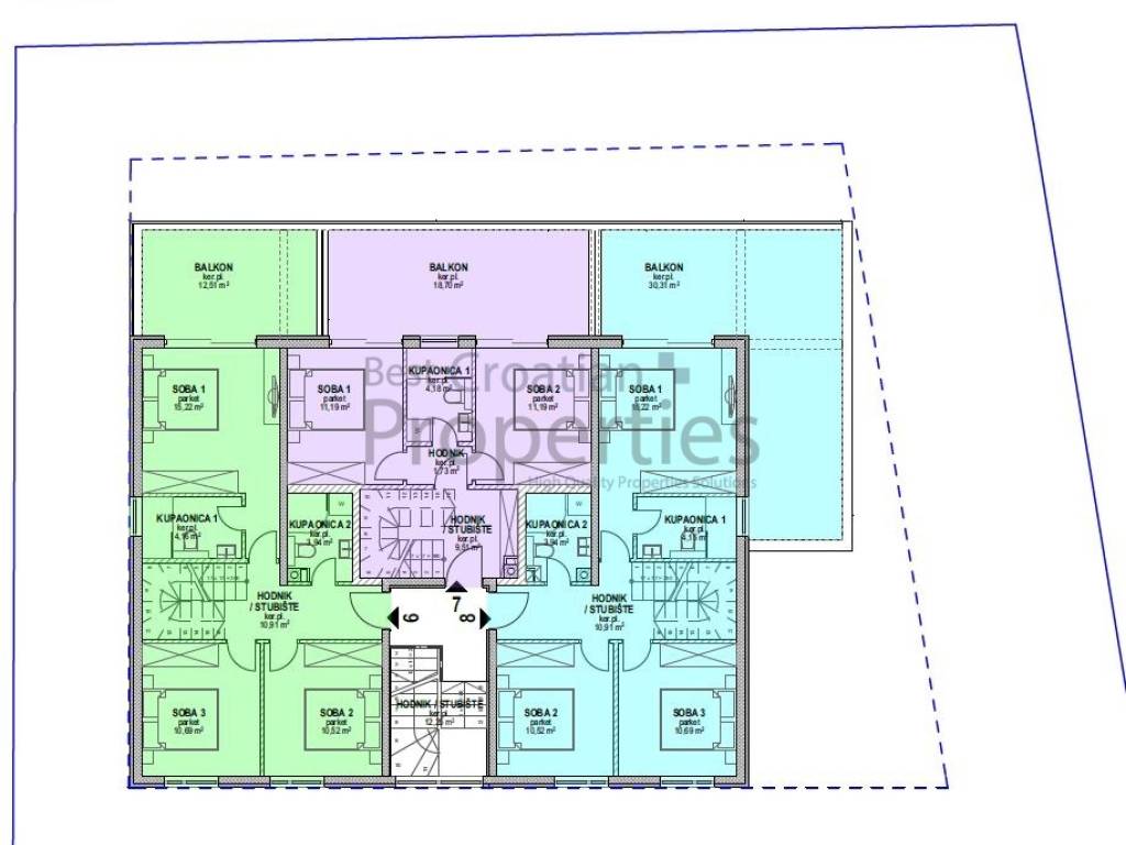 NAPOMENA: Apartman je označen kao S6, nalazi se na drugom katu + galeriji. Pripada mu vlastita terasa i parkirno mjesto.