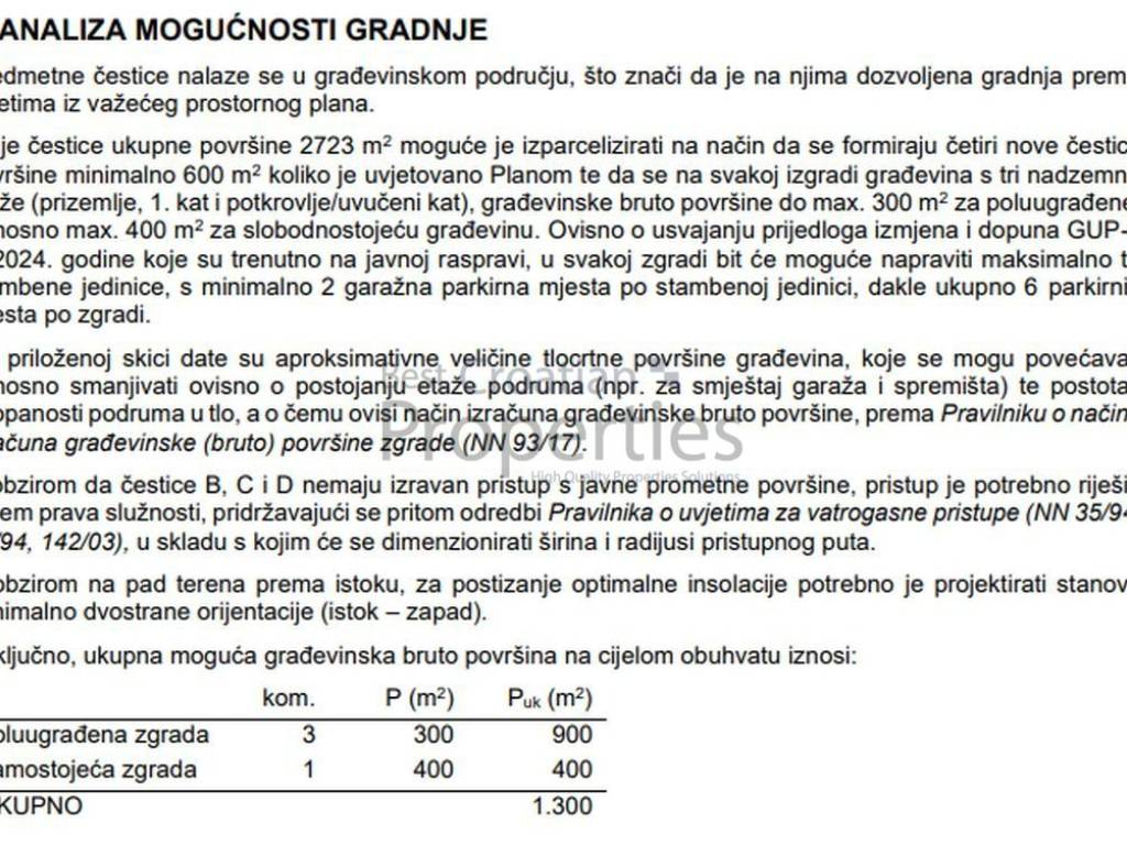 S obzirom na širinu čestice koja iznosi 15 m treba s arhitektom iskoristiti parcelu tako da se formira pristup stražnjim česticama (put, pravo služnosti).