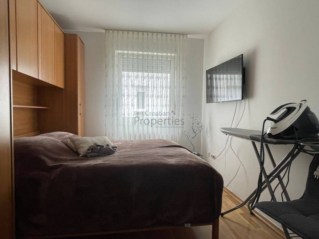 Stan ima pripadajuće parkirno mjesto ispred zgrade i pripadajuću garažu, oboje uključeni u cijenu.