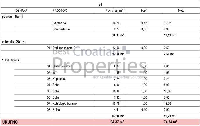 Svakom stanu pripada graža, spremište, te jedno vanjsko parkirno mjesto, koji su uključeni u cijenu stana.
