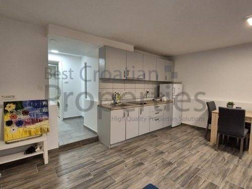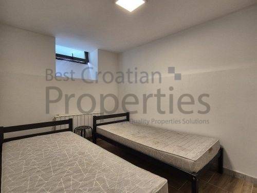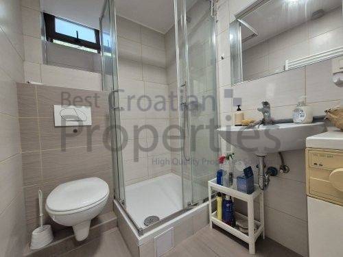 Prodaje se namješten, opremljena kuhinja, kupaona s tuš kabinom, protuprovalna vrata, portafon. Grijanje je centralno električno sa termostatom.