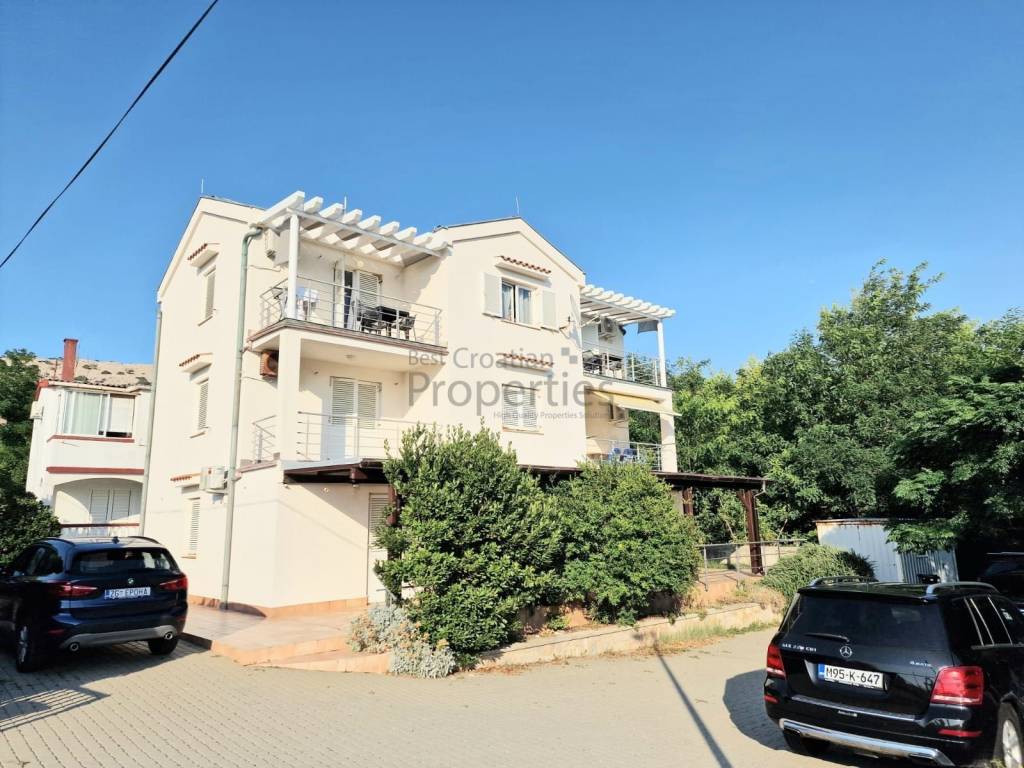 Prodaju se predivna dvaapartmana u potkrovlju zgrade koja ukupno ima 6 apartmana s okućnicom površine 610m2. Zgrada je od mora udaljena 400m zračne linije te se s terase pruža predivan pogled na more i Paški zaljev.