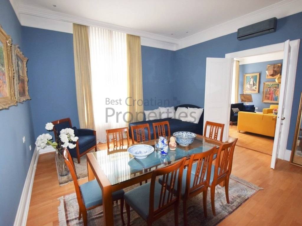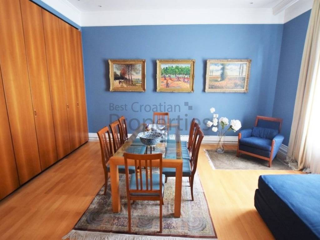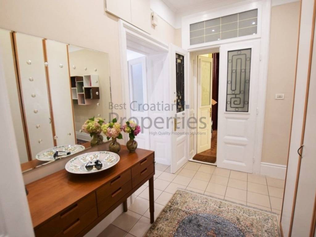 Sastoji se odulaznog prostora zaštićenog protuprovalnim vratima i namještenog prostranim garderobnim ormarom i komodom, velikog hodnika, blagovaonice s potpuno opremljenom kuhinjom i ostavom, prostranog dnevnog boravka s pogledom na Gundulićevu ulicu i Botanički vrt, dvije velike spavaće sobe i jedne manje sobe, kupaonice s kadomte odvojenim wc-om.