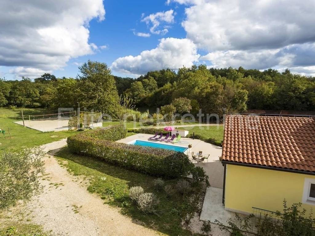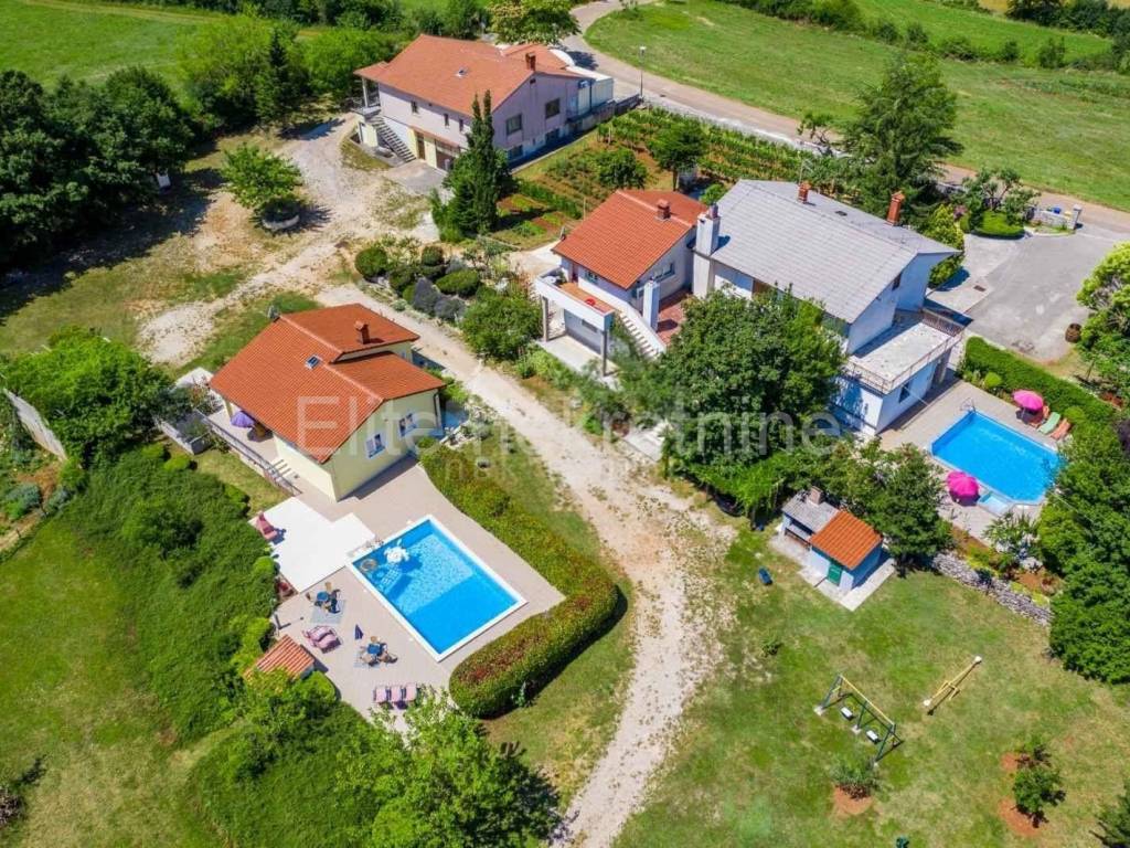 In a peaceful setting, just 2 km from the picturesque town of Žminj, a unique family estate complex is for sale, consisting of two fully furnished family houses with swimming pools and an additional commercial and residential building. The estate is located at the end of the village, surrounded by forests and greenery, which provides complete privacy and peace.