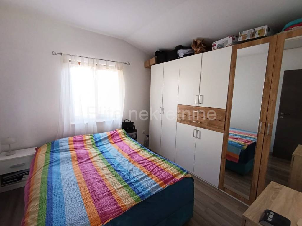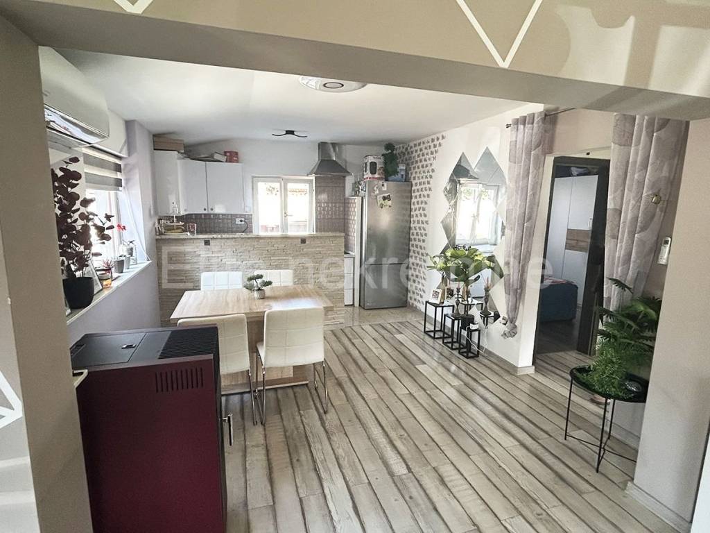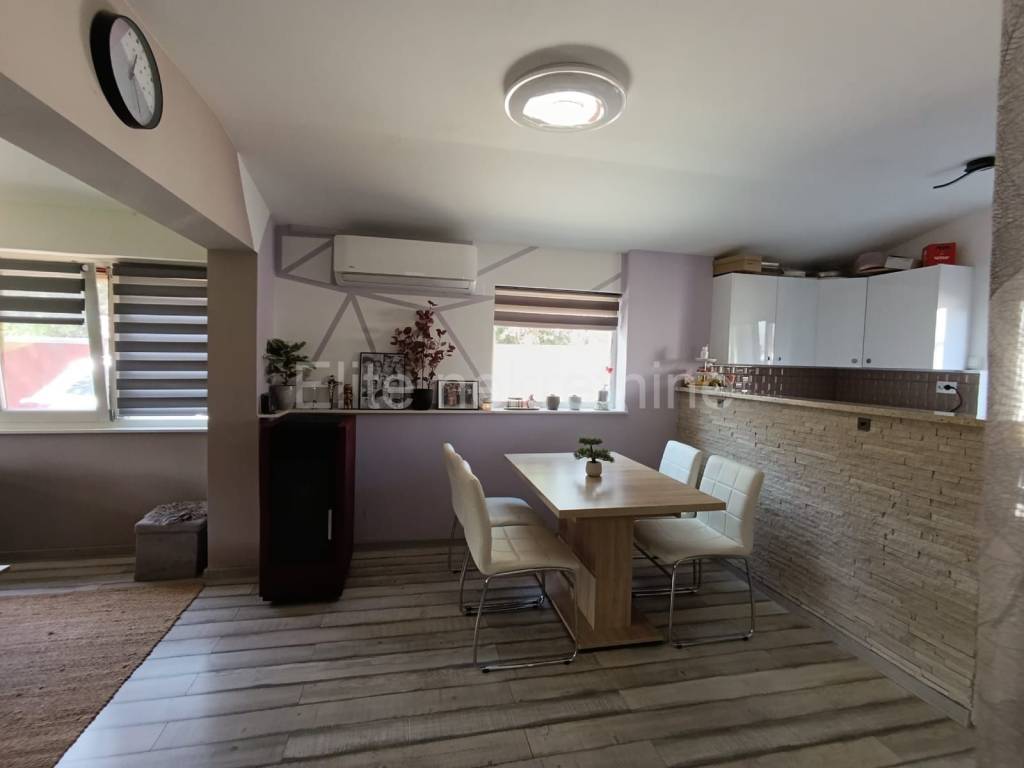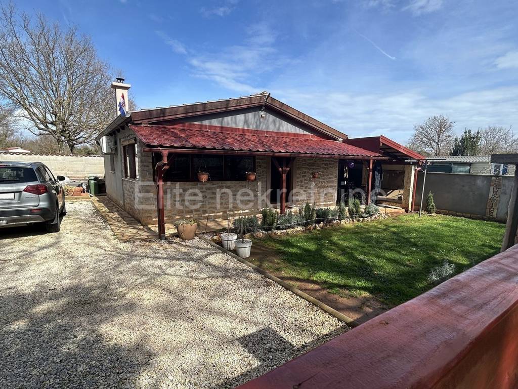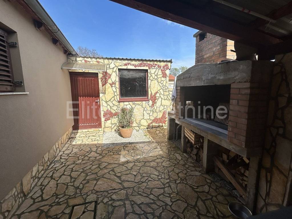 Istria, Medulin - small house for sale with a yard in Medulin! On the outskirts of Medulin, this charming single-storey house with 55m2 of living space and 245m2 of yard is for sale. The neatly fenced area offers privacy and connects the indoor and outdoor spaces into one whole. The house is isolated from the tourist crowds and yet is only 1.5km away from the first beaches and a few kilometers from many interesting places such as the Kamenjak, Banjola, Pomera, Ližnjan nature parks and 9km from Pula and many surrounding beaches. The house has two bedrooms, a bathroom and an open living area that connects the kitchen, dining room and living room. A large canopy covers the part in front of the house and the paved area around the barbecue so that summer gatherings and pleasant stays in the open air throughout the year are protected from the sun and rain. There is also a smaller building next to the house that is divided into a laundry room and a storage room. There is parking for two cars in the yard. Heating and cooling is by air conditioning, and as additional heating in the living room, there is also a wood stove. If you are looking for peace and nature in the vicinity of all facilities necessary for everyday life and fantastic summer vacations, this is a great choice. Direct contact with the agent: Romana S. | Mob. 091 4884 658 | Email: romana_eliteestate@outlook.com