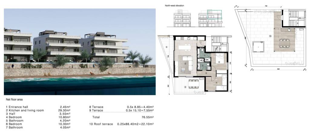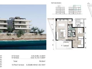  Impozantnu krovnu terasu koja se prostire preko cijelog apartmana — vašu privatnu vanjsku oazu s nevjerojatnim pogledom od 360 stupnjeva. Terasa je unaprijed pripremljena za postavljanje vanjske kuhinje i jacuzzi kade — savršeno za ljetne večeri, večere pod zvijezdama ili jednostavno za uživanje uz piće i zalazak sunca