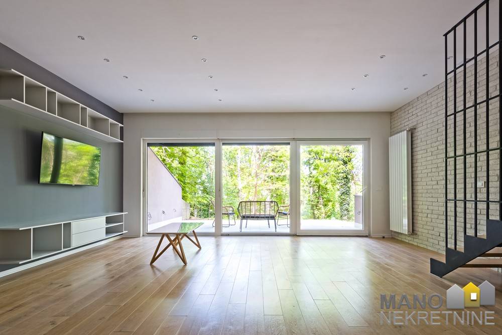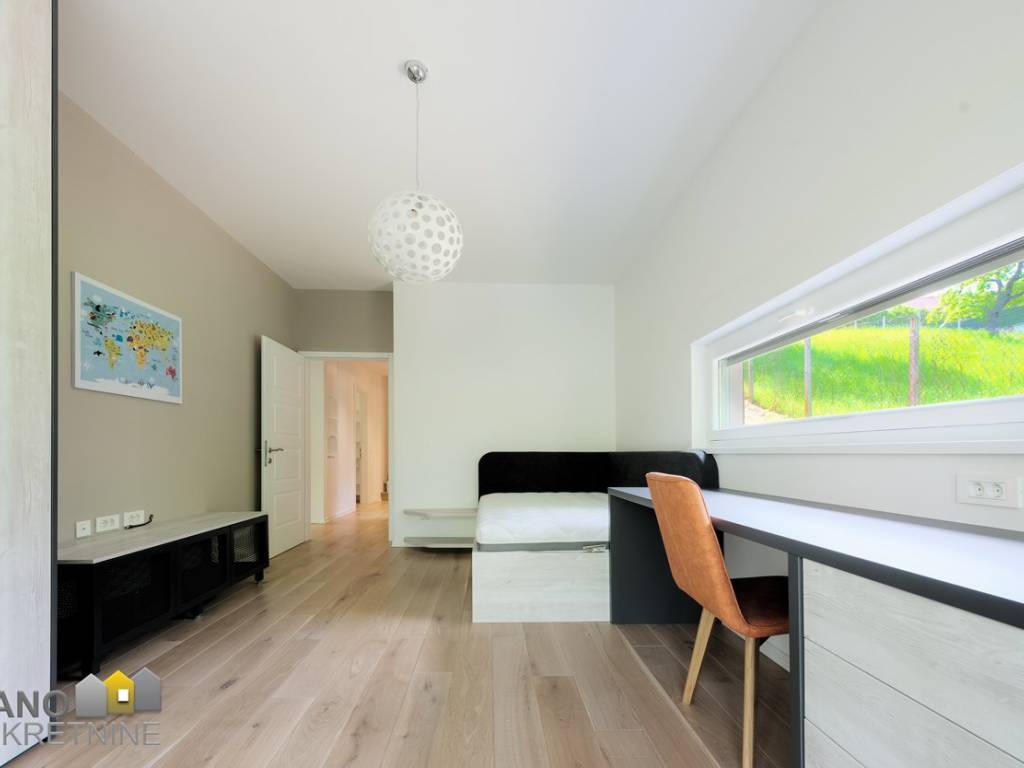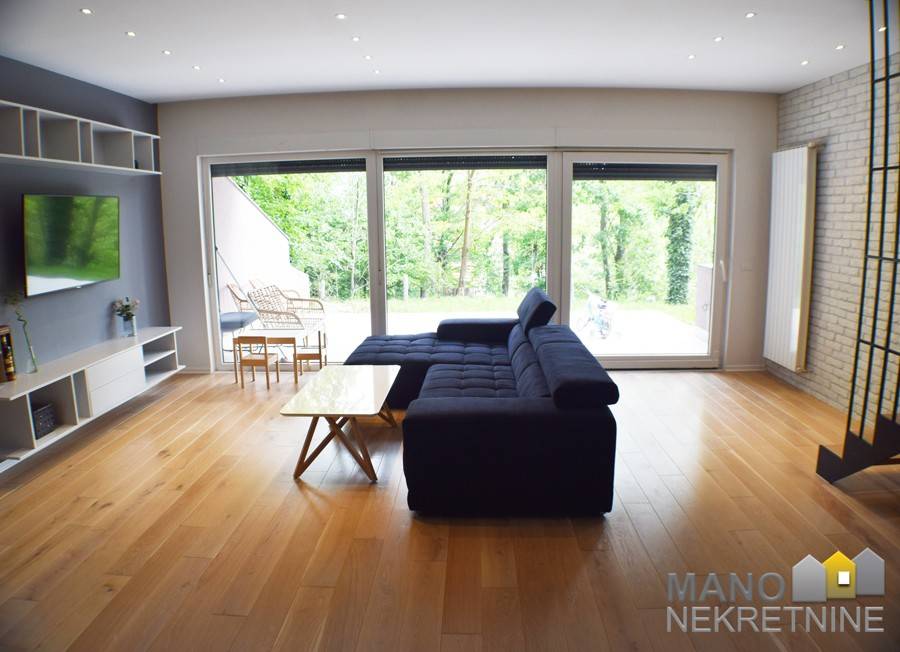 Na mirnoj lokaciji, u zelenilu Gornjeg Bukovca, smjestio se ovaj prostrani i potpuno renoviran dvoetažni stan od 200 m2. Spoj modernog dizajna, funkcionalnosti i udobnosti čini ga idealnim domom za obitelj ili one koji traže luksuzan životni prostor u neposrednoj blizini centra Zagreba.