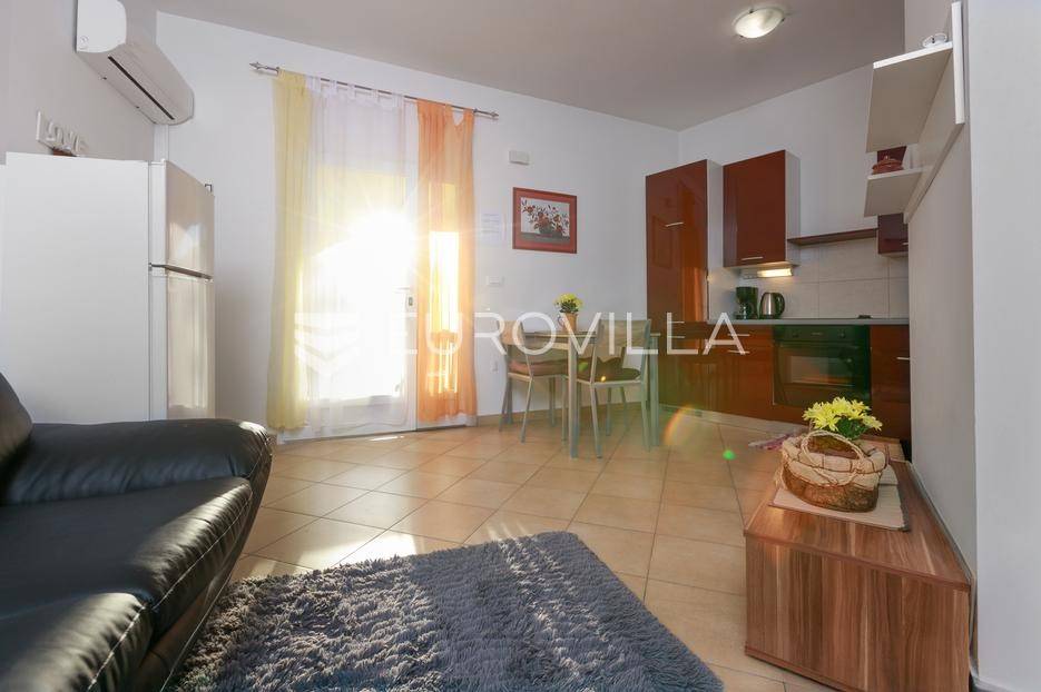 U mirnom i uređenom dijelu Brestovica iznajmljuje se prostran dvosoban stan površine 75 m², smješten u prizemlju kvalitetno održavane zgrade. Stan je potpuno namješten, izuzetno svijetao i ugodan za boravak, a obiluje detaljima vidljivima na fotografijama.Ulazni dio vodi u otvoreni dnevni prostor u kojem se nalaze dnevni boravak, blagovaonica i kuhinja. Prostor je funkcionalno organiziran - dnevni boravak opremljen je kožnom garniturom, blagovaonica prima prirodno svjetlo preko velike staklene stijene, dok je kuhinja moderna i opremljena svim potrebnim elementima i aparatima.Spavaća soba je iznimno prostrana, s bračnim krevetom, dodatnim ležajem i ugradbenim ormarima, što prostoru daje iznimnu praktičnost. Kupaonica je kompletno uređena, s kadom i perilicom rublja.Iz dnevnog prostora pruža se izlaz na lođu, a neposredno ispred stana nalazi se velika privatna terasa okružena vrtom i mediteranskim biljem. Stan uživa miran ambijent i lijep pogled prema zelenilu i moru.Stan je klimatiziran i spreman za useljenje. Parking je osiguran ispred objekta.Cijena mjesečnog najma: 750 € + režijeUvjeti: bez kućnih ljubimaca; isključivo dugoročni najam; prilikom sklapanja ugovora obvezno plaćanje dva najma unaprijed + depozita u visini jednog mjesečnog najma.Stojimo vam na raspolaganju za dodatne informacije i razgled.