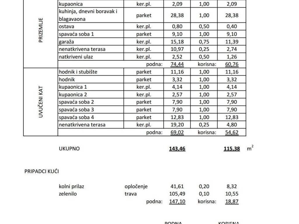Ukupno: 290,56 m2 (uključujući stan, terase, vrt i garažu)