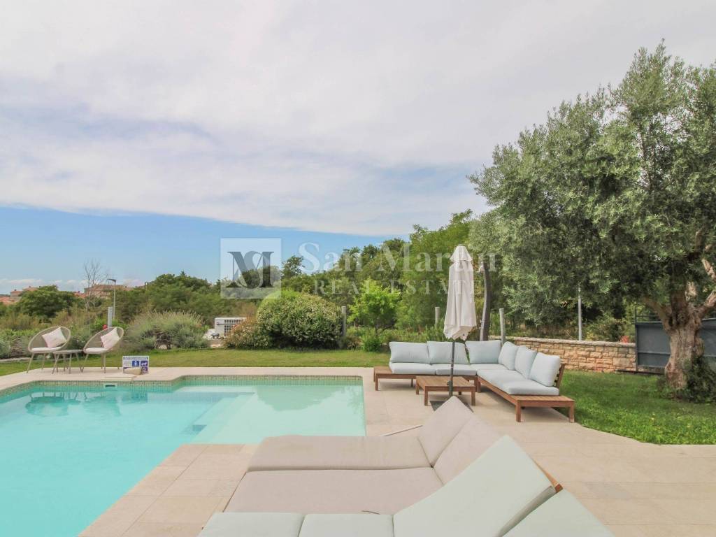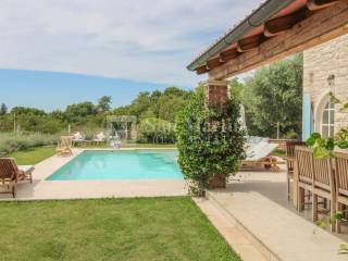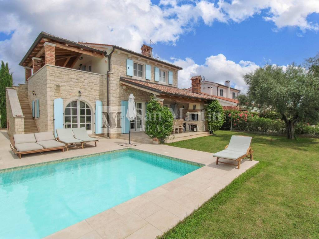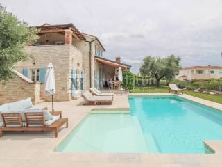 Poreč, surroundings - beautiful stone house with swimming pool and sea view.
