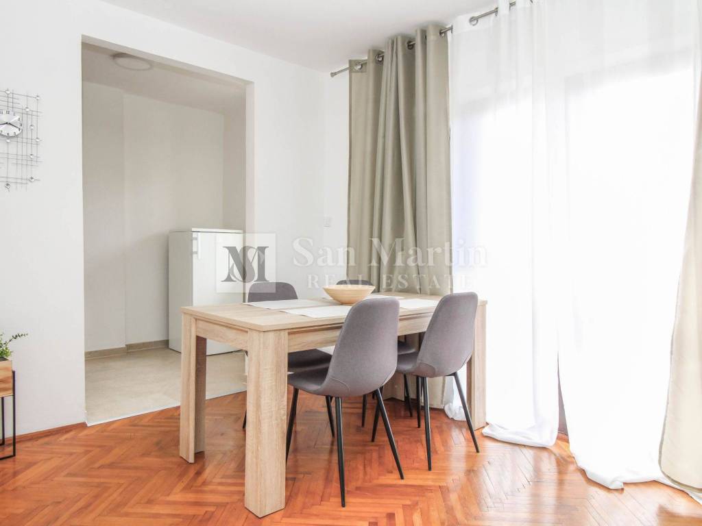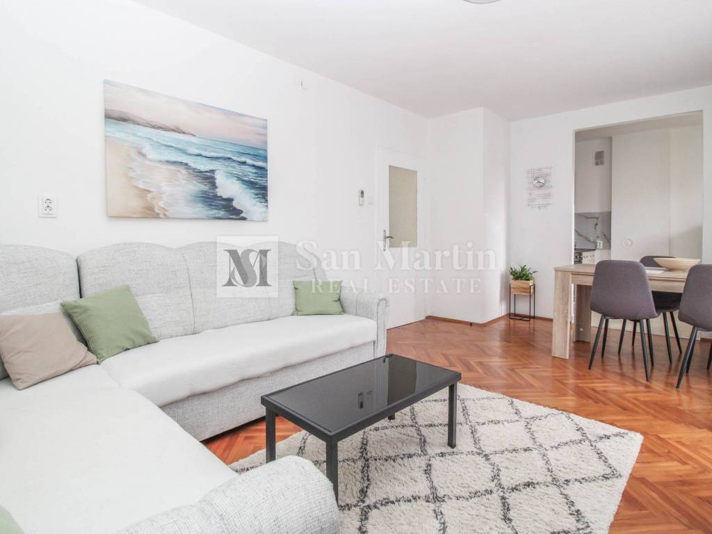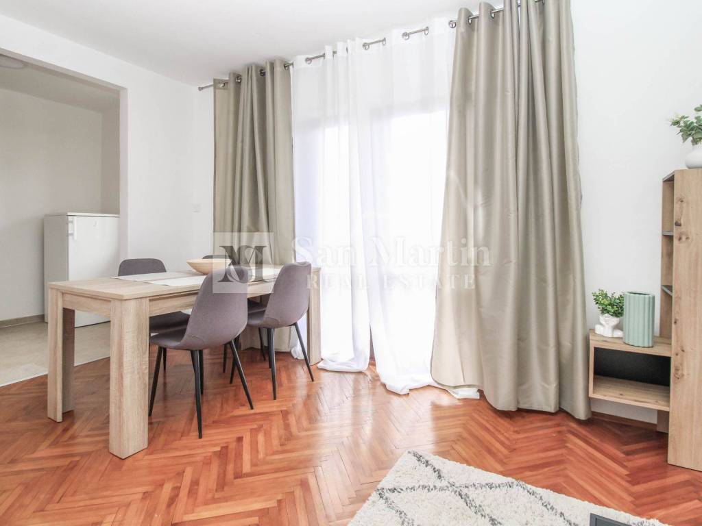 For sale is a nice, spacious apartment with a total area of 94 m2, located on the first floor of a smaller building. The property consists of an entrance hall, living room, kitchen, dining room, two bedrooms and a bathroom.