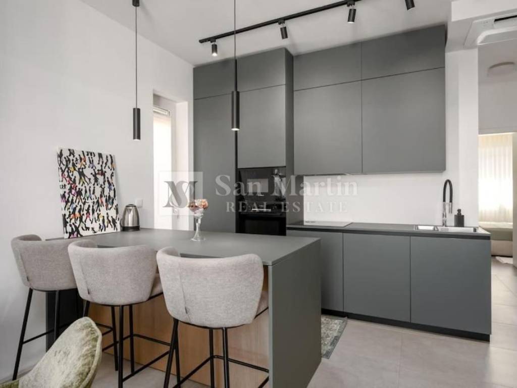 This beautiful apartment is for sale in a sought-after location, close to the city and the sea, located on the first floor of a new residential building. Its total area is 70 m2, and the apartment consists of an entrance hall, living room, kitchen and dining room, two bedrooms and two bathrooms.