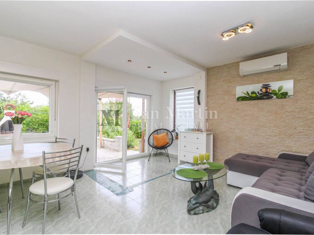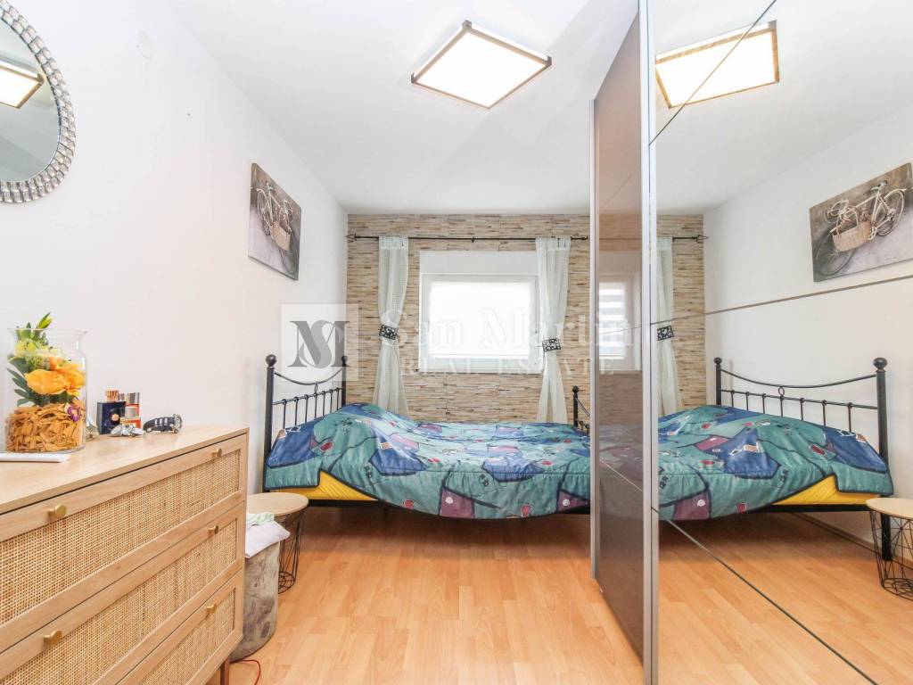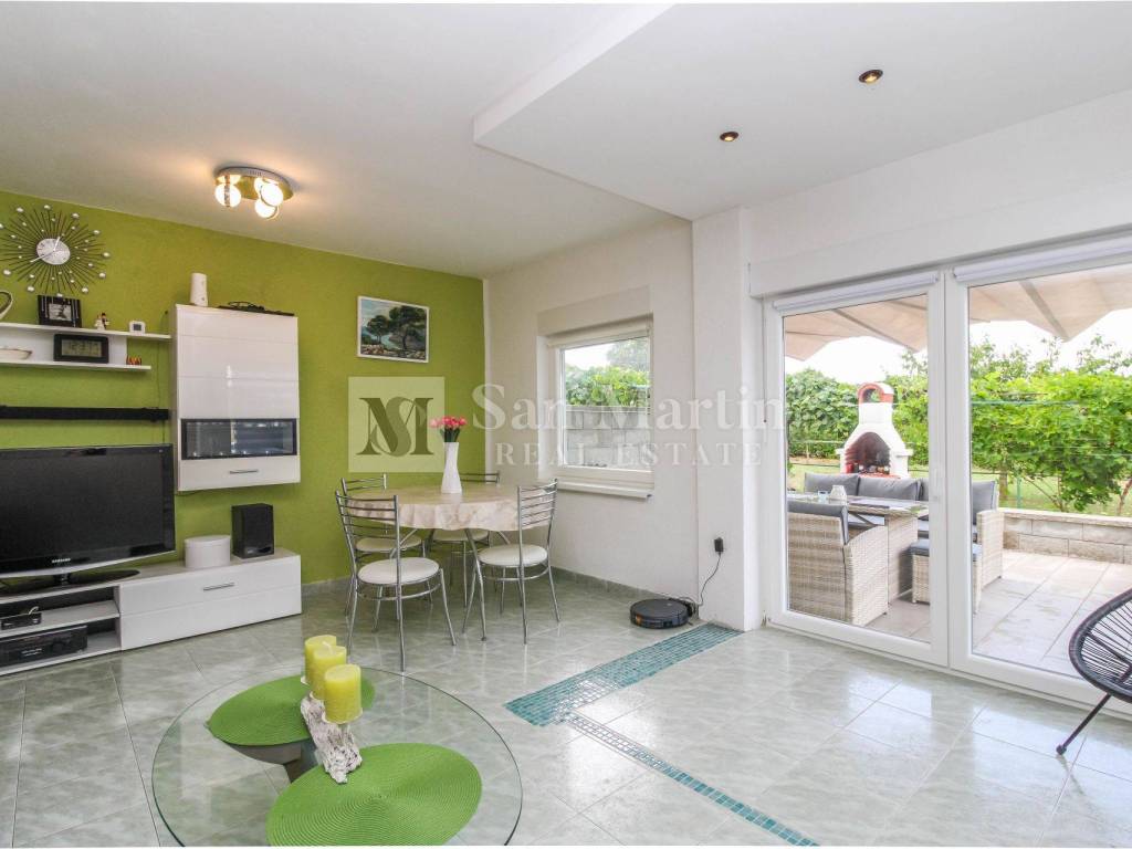 This apartment with a total area of 68.53 m2 is located not far from the city of Poreč, in a quiet street in a nice, pleasant environment. The apartment consists of an entrance hall, living room, kitchen and dining room, two bedrooms, bathroom and storage room.