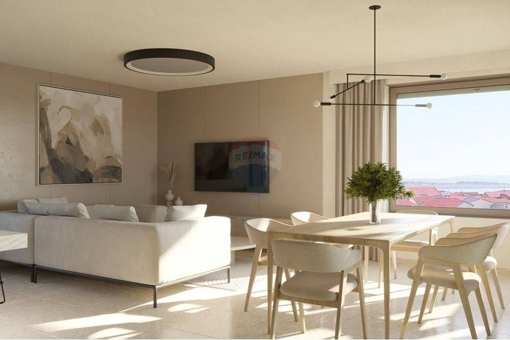 Residential building with a total of four apartments. It is located on the island of Pag in the town of Povljana. The building has one two-story apartment consisting of an entrance and a living room on the ground floor. The bedrooms are located on the first/second floor. On the ground floor and on the first floor there are two more identical apartments, with two bedrooms and a living room. The 2nd floor contains a penthouse with three bedrooms and a living room. The living room and bedrooms have separate terraces. Both with a beautiful view of the sea.