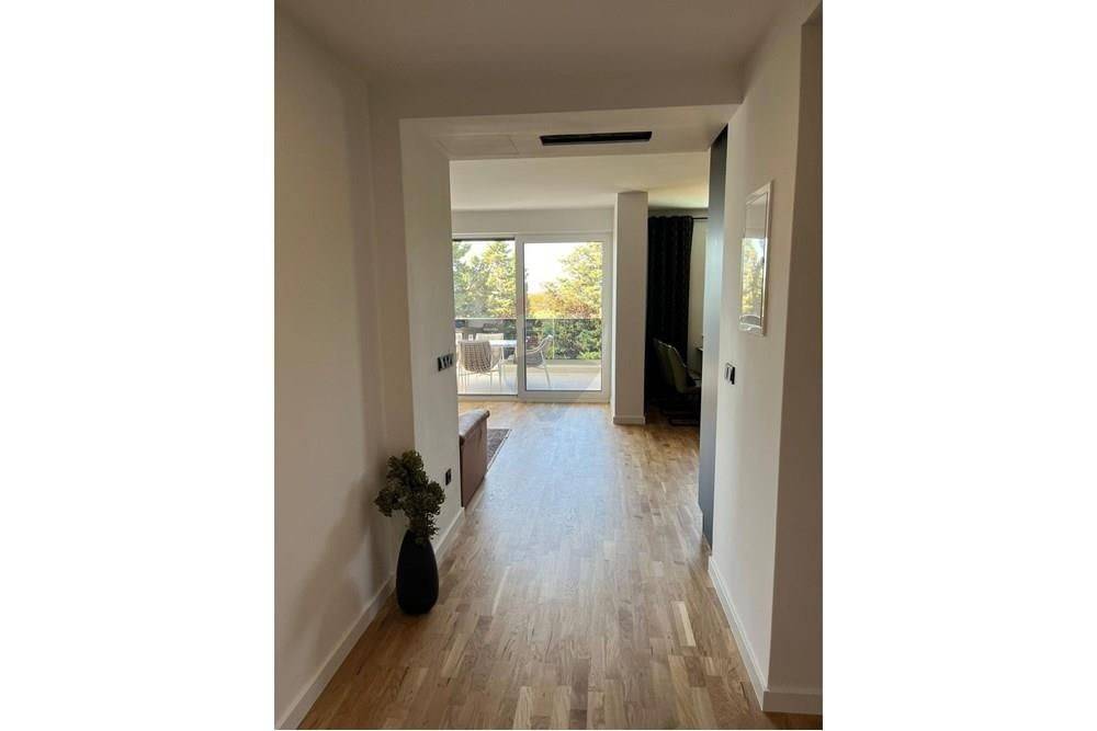 a living room with a kitchen, a toilet, two toilets with a bathroom, two loggias and a covered terrace,