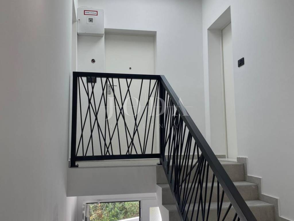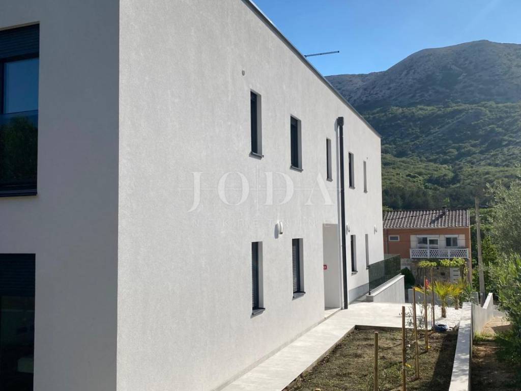 The apartment is located on the first floor of a smaller residential building and has an area of 62 m2. It consists of a hallway, a living room with a kitchen, a bathroom, two bedrooms and a loggia. The apartment is being sold on a turnkey basis with PVC carpentry with blinds, three air conditioners, burglar-proof and fire-proof entrance doors, ceramic floor coverings and sanitary ware in the bathroom. The apartment has two parking spaces and a storage room in the building. It is located in the vicinity of Baška, at a distance of 4000 meters from the sea and the center. The real estate is in the VAT system, the buyer is exempt from paying real estate sales tax.