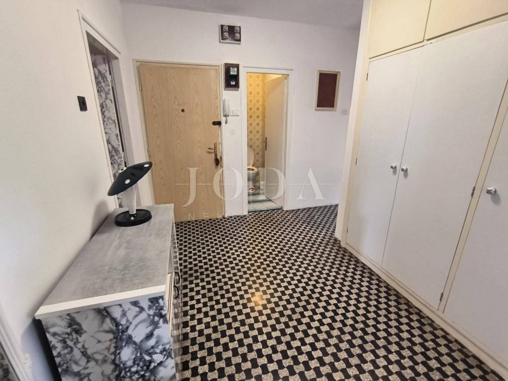 The apartment is a classic three-room apartment and consists of a hallway, kitchen, utility room, spacious living room, bathroom, separate toilet and two bedrooms, and requires renovation. The apartment has a large south-facing balcony with a view of the sea.