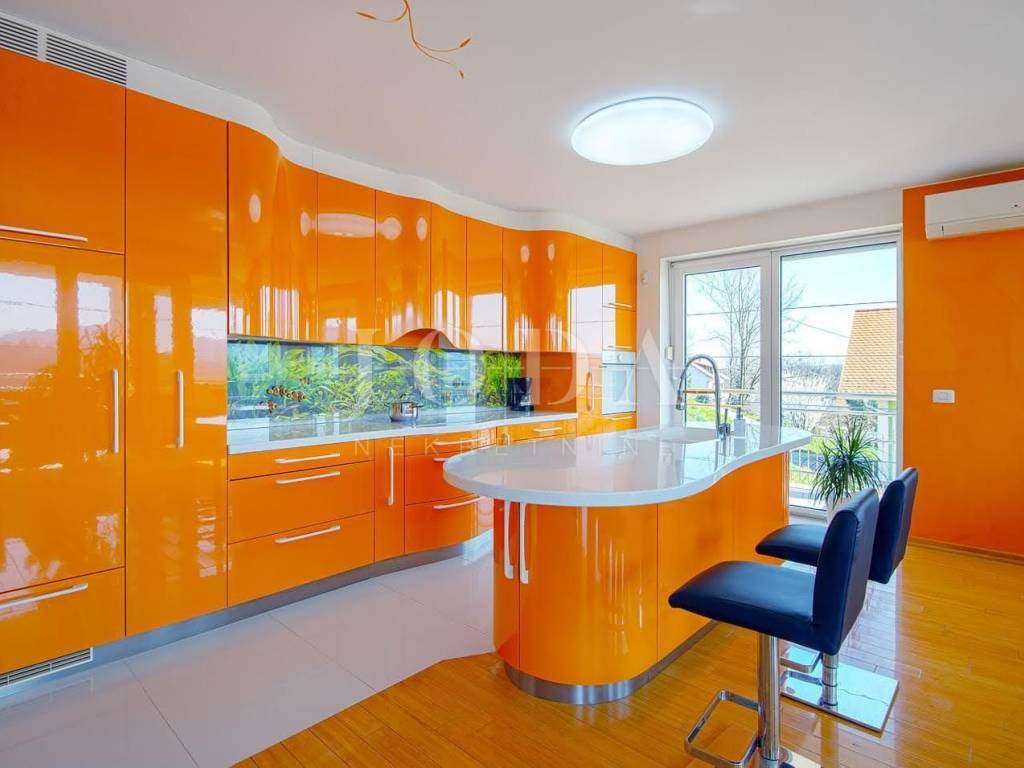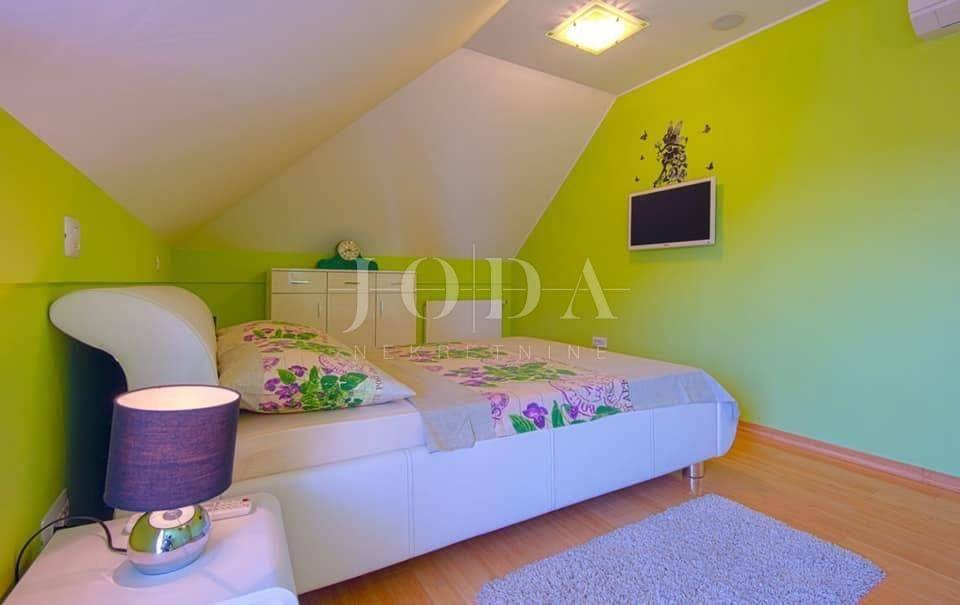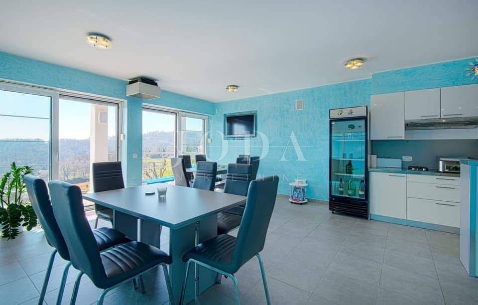 The house spans multiple levels and offers a spacious living room with access to a 24 m terrace, which provides a beautiful view of Varaždinske Toplice. In addition to the living area, there is a dining room, a fully equipped kitchen, a master bedroom with a private bathroom and wardrobe, an additional bathroom with a steam bath, and a separate toilet.