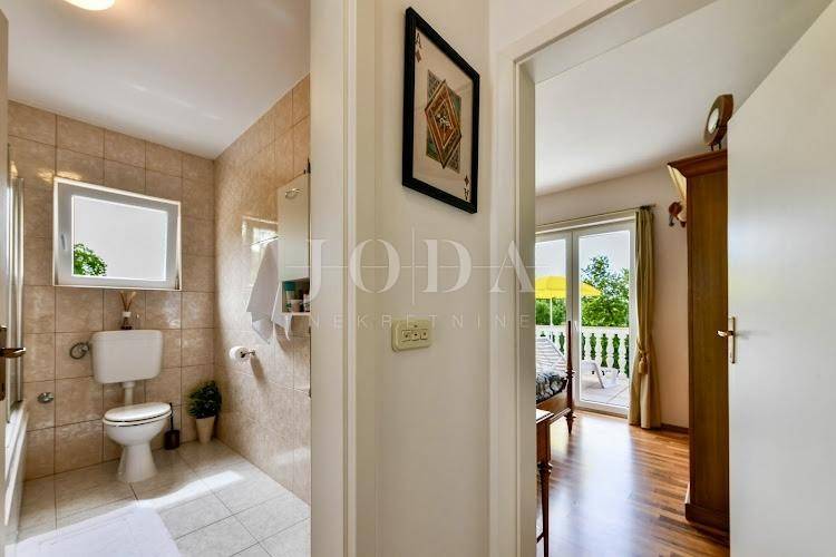 Next to the house, there is a garage and a storage room as well as a paved parking lot for ten cars.