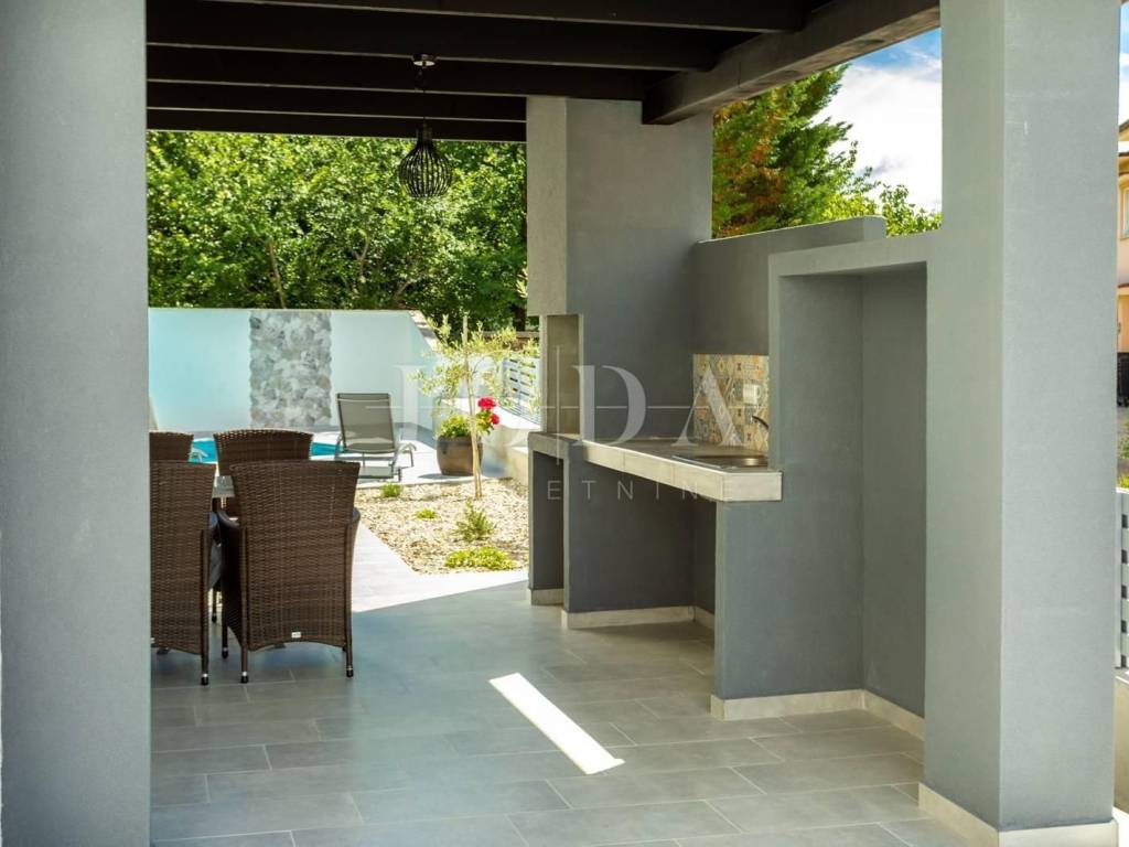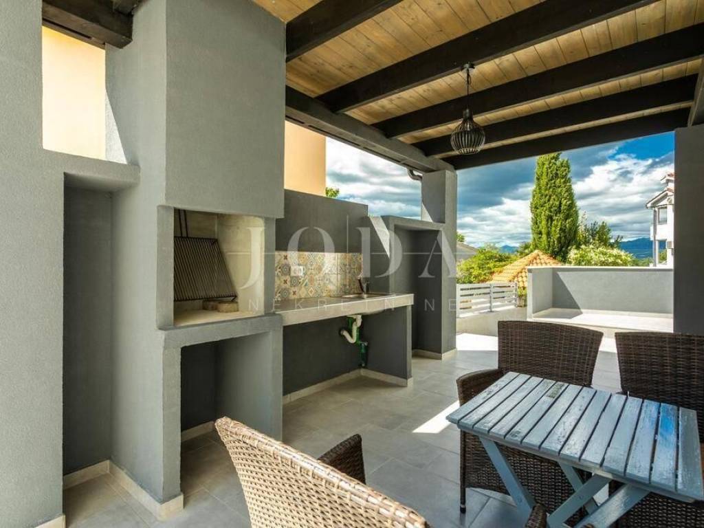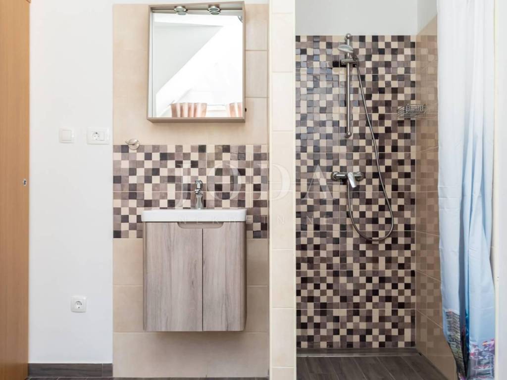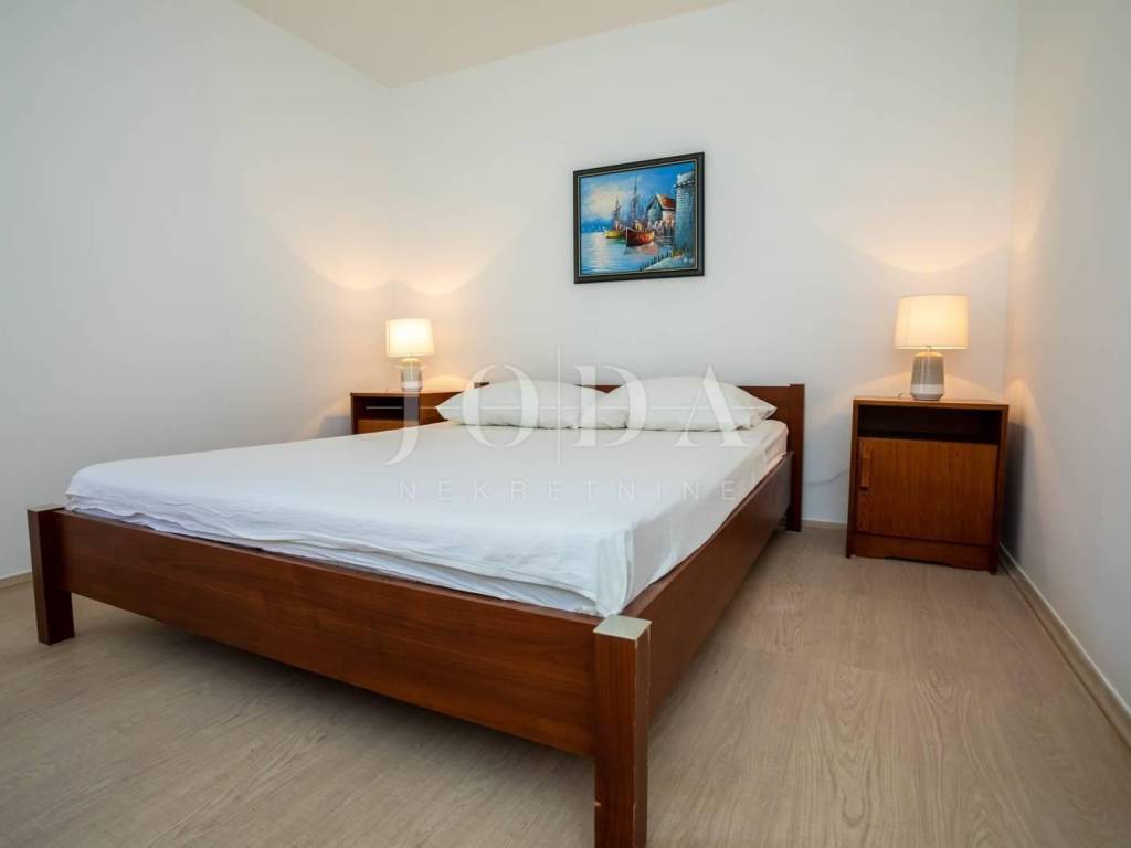 Soline Bay, semi-detached house with pool, modernly renovated in 2020. The living area of the house is 110m2 and consists of ground and first floor which are connected by an internal staircase. On the ground floor there is a kitchen, a dining room, a living room, one bedroom and a bathroom. Upstairs are two bedrooms, bathroom, living room, kitchenette and terrace with sea view. In the garden of about 100m2 there is a swimming pool with a sun deck and a small covered terrace with barbecue. Two parking spaces are provided. The house is located in an excellent location, only 100 meters from the sea and town centre.