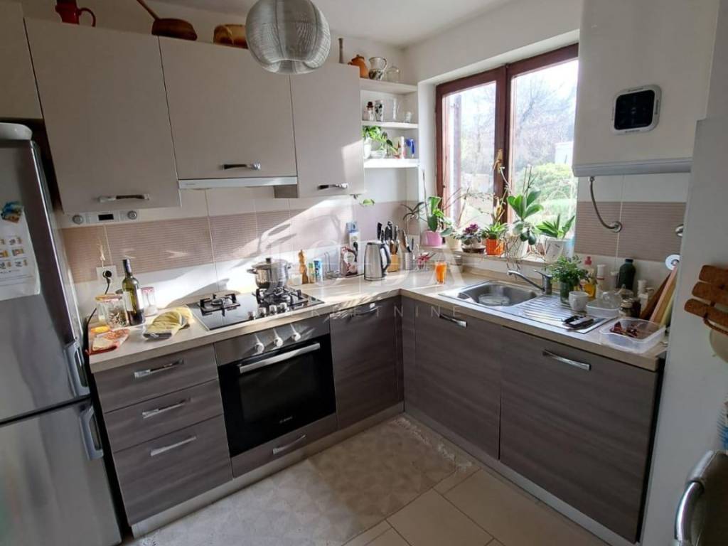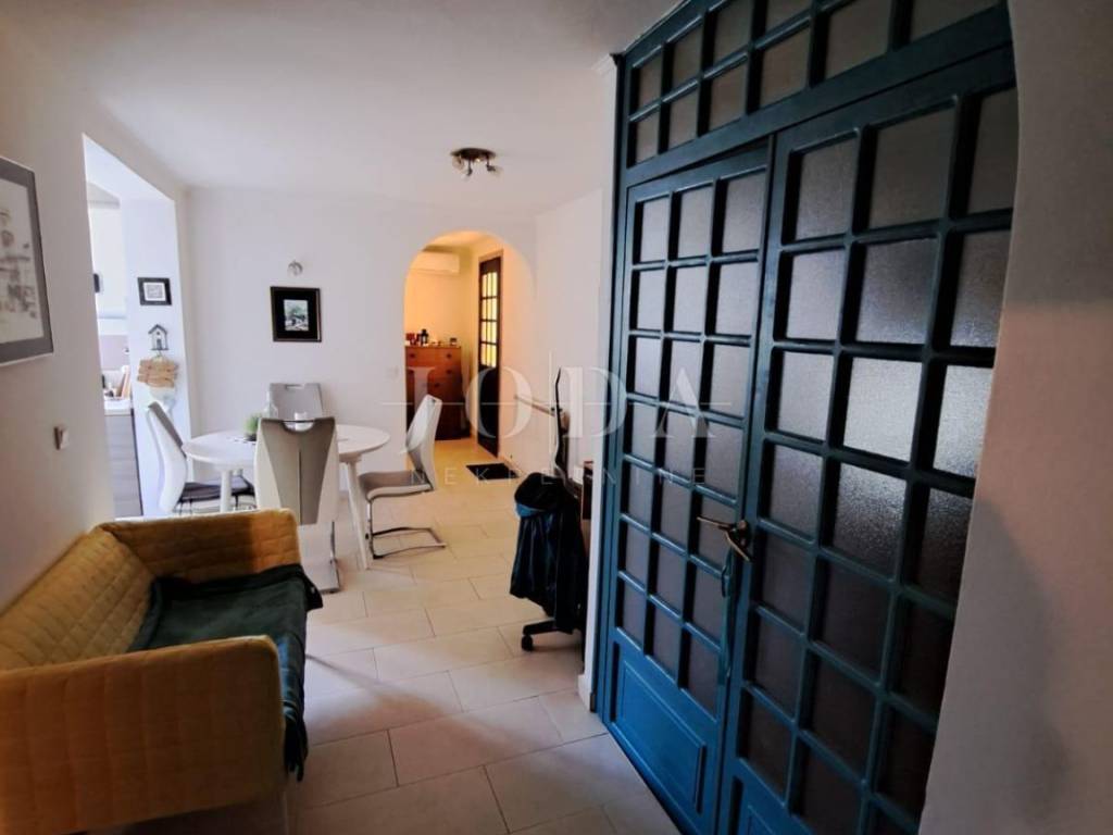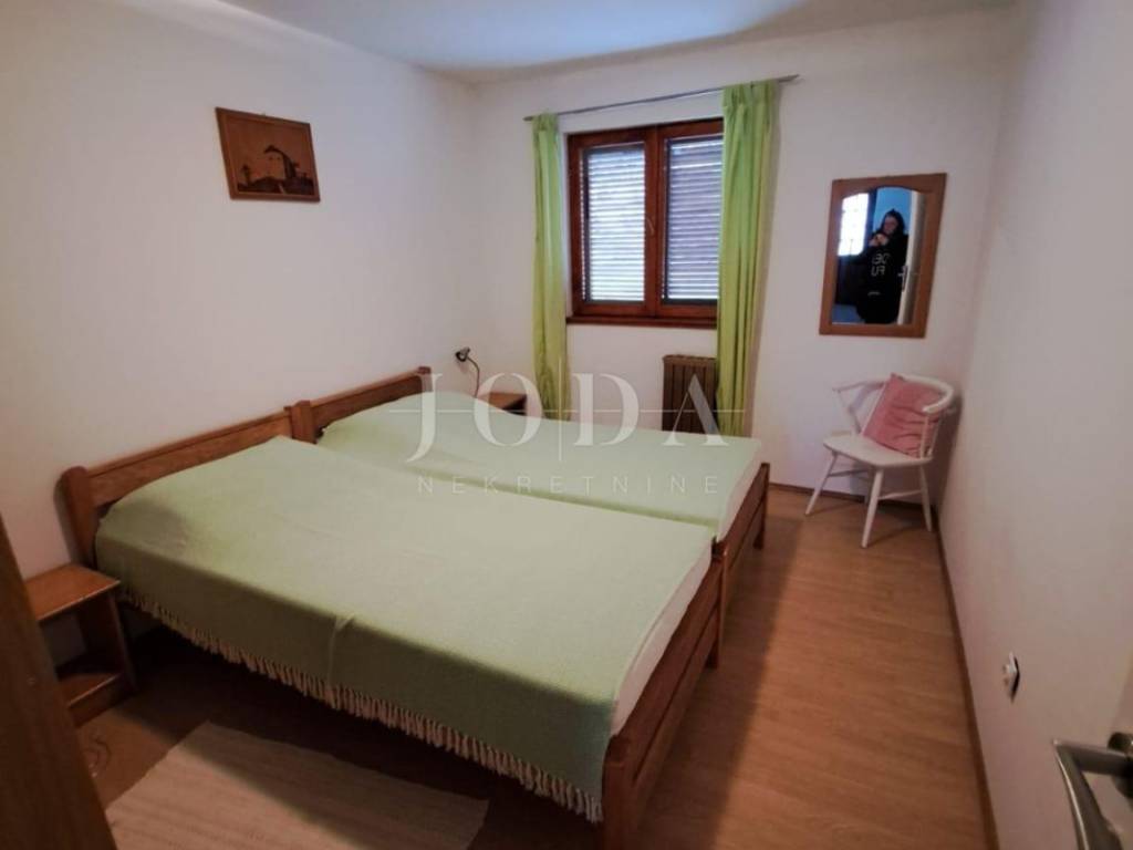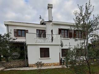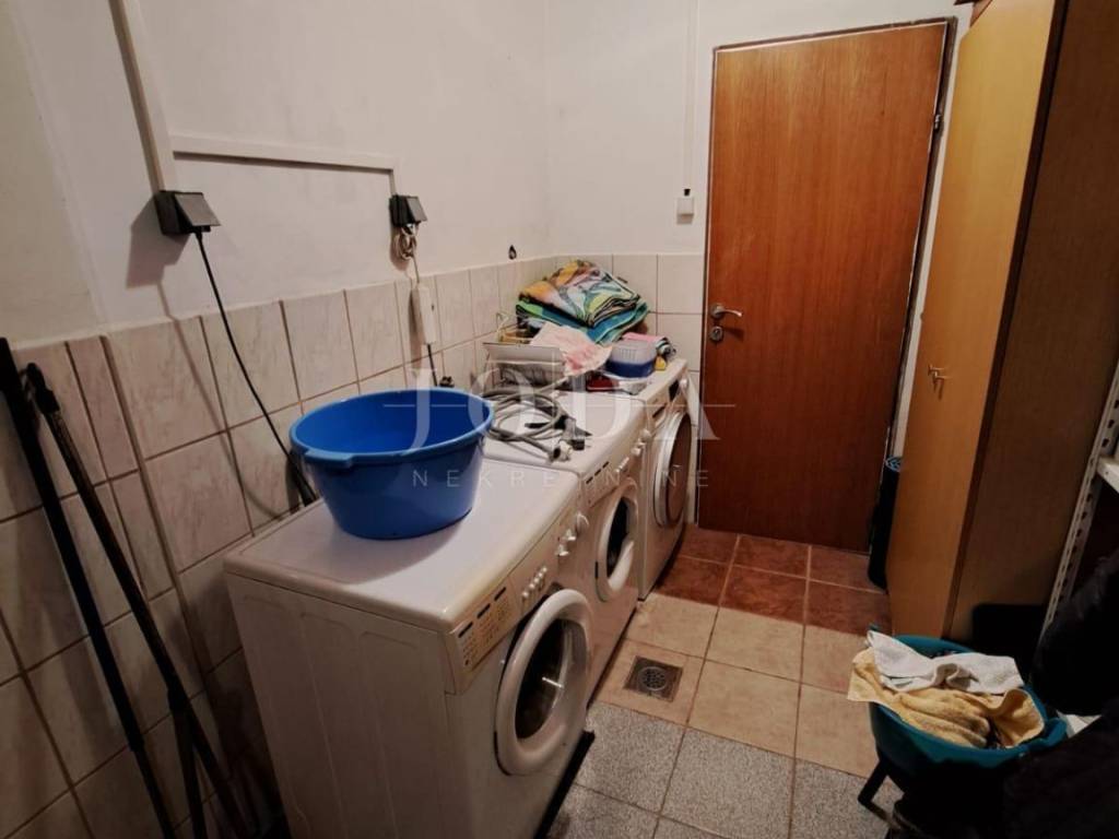 The house has 399,68m2 of living space and 1280m2 of garden. The house is a two-story building and consists of the ground floor and the first floor, but there is a project for the construction of the second floor. On the ground floor, there are two two-bedroom apartments with a living room, a workshop of approx. 60m2 and a boiler room where there is a stove for central heating with oil, wood, or pellets. Radiators are located in all rooms of the house. On the first floor is a spacious apartment with a living room, kitchen, dining room, three bedrooms, bathroom, storage room, and toilet. The house has a garage with parking spaces in the garden. All residential units are fully air-conditioned and fully furnished. The balcony offers a beautiful view of the sea. The property is characterized by quality construction, a good location, and a large, spacious garden. There is a possibility of building a swimming pool in the garden. Great investment for tourist rental, but also for living!