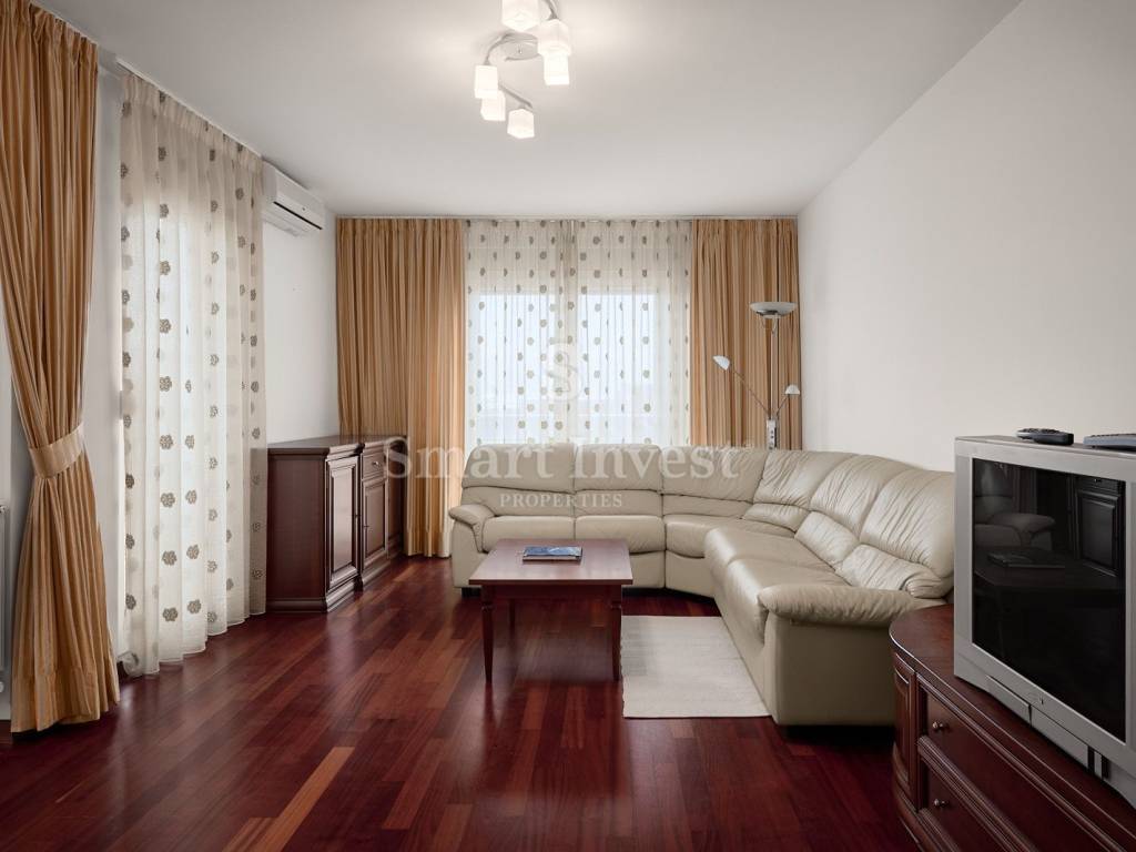 The apartment is fully furnished and and has gas-fired central heating.