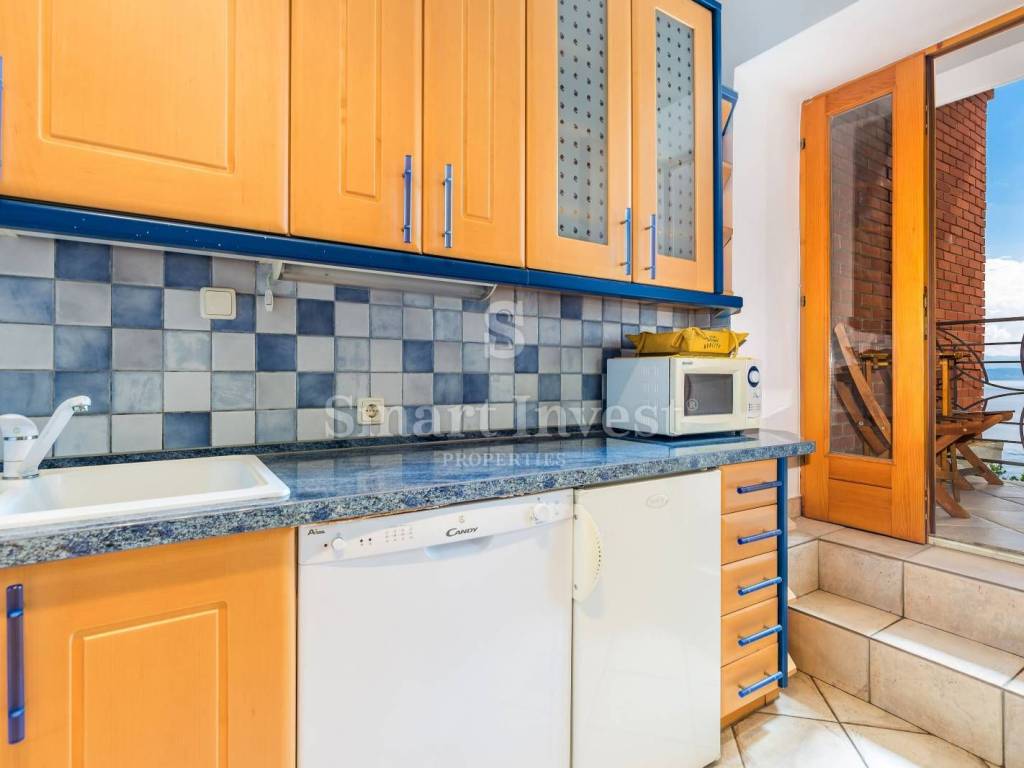 The apartment is situated on the 1st floot of a beautiful villa and consists of a corridor, living room with access to a spacious balcony with open sea view, kitchen with dining area which has access to one more balcony on south side and to a covered veranda on north side, 3 bedrooms, 3 bathrooms, storage. The apartment has a separated entrance and spacious open terrace.