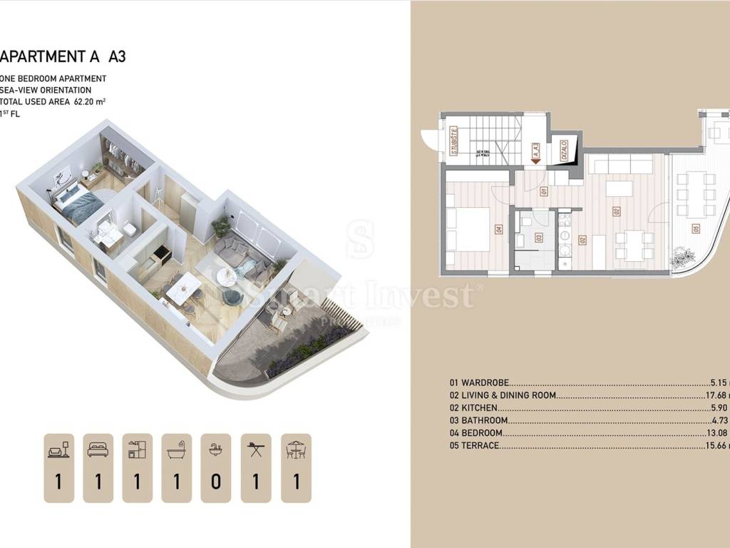 total apartment area: 62.20 m2