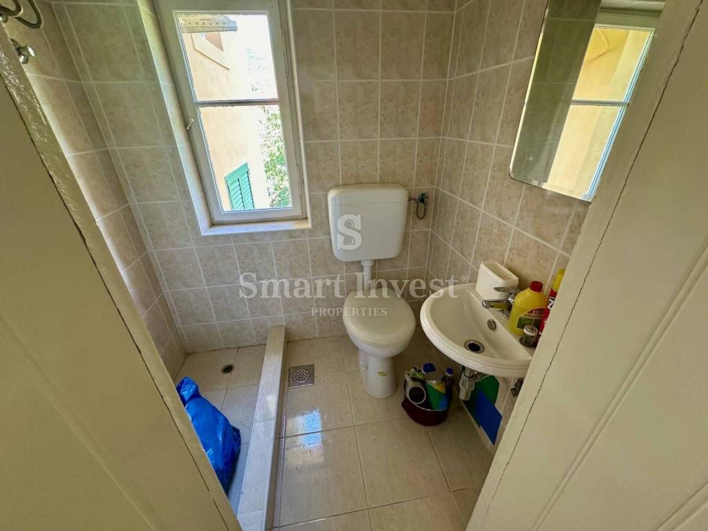 The yard of the villa is fenced and only tenants have access to it. In the yard there is a piece of garden that is used only by this apartment, where there is a brick garden house which has electricity and water and serves for the moment as an outdoor storage room.