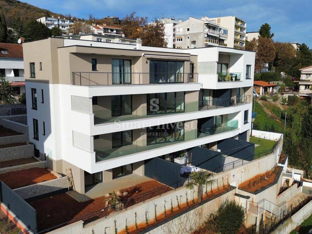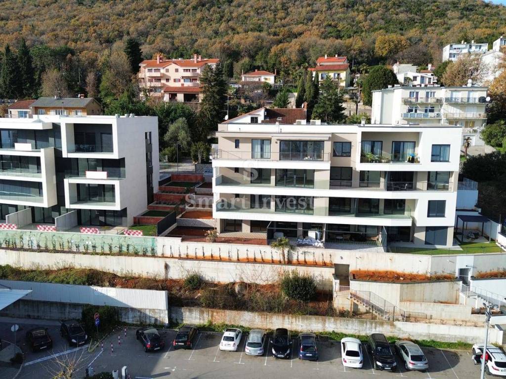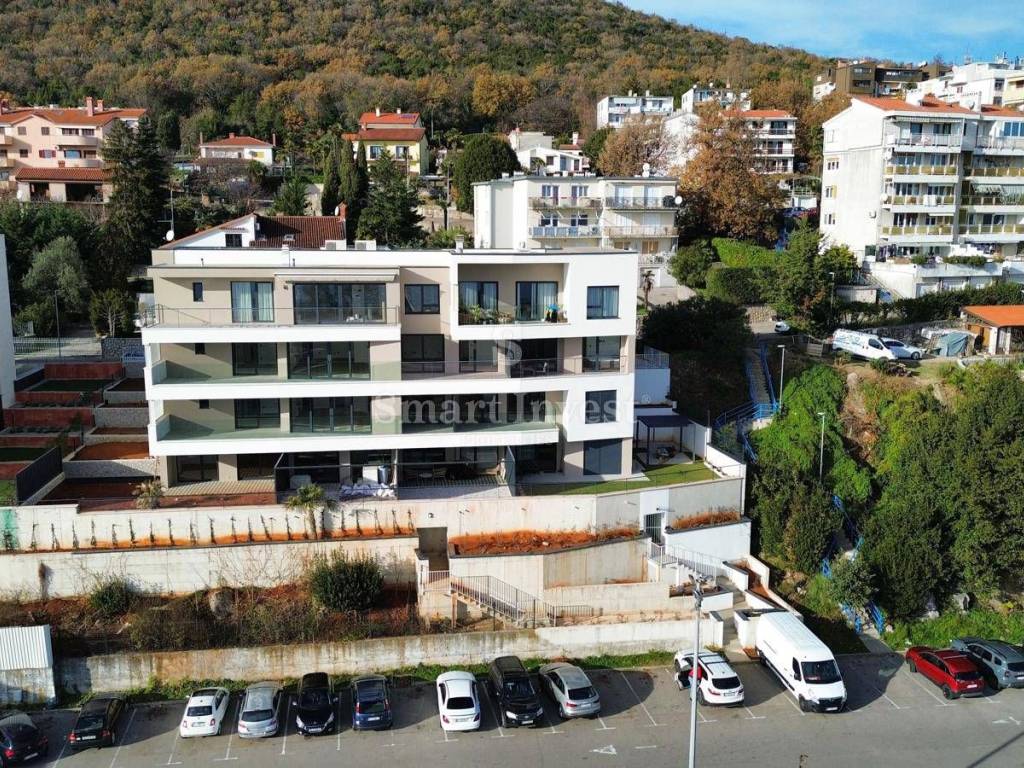 OPATIJA, For sale is a comfortable apartment, 4 bedrooms + living room, with two balconies and a view of the sea, in a new building with a garage and an elevator. Great location near the center and the sea!