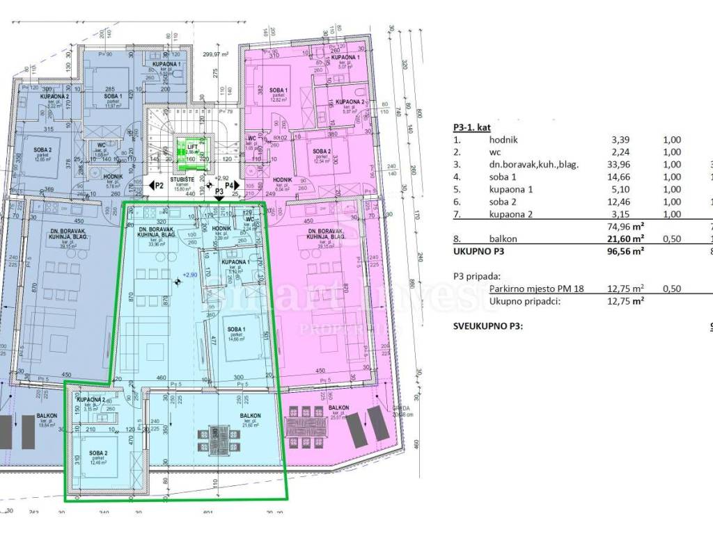 For sale is a luxurious apartment, 2 bedrooms + living room, in a new residential complex with a shared pool, an elevator and an underground garage located in a quiet location near the sea and the center of Opatija!