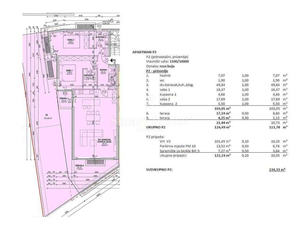 This beautiful apartment is designed for maximum comfort and luxury. At your disposal are a corridor, toilet, two bedrooms with en-suite bathrooms, spacious living room with kitchen and dining area, spacious terrace and garden - an ideal place to spend time with family and friends.