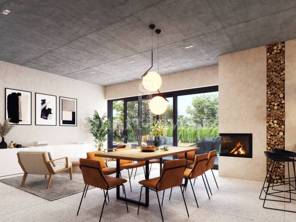 On the ground floor is a spacious living room with a modern fireplace, kitchen with dining area, toilet, storage and machinery room. In the living room will be placed large glass walls through which you exit to the spacious terrace and towards the pool.