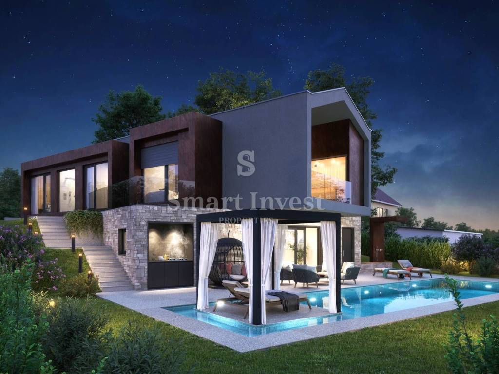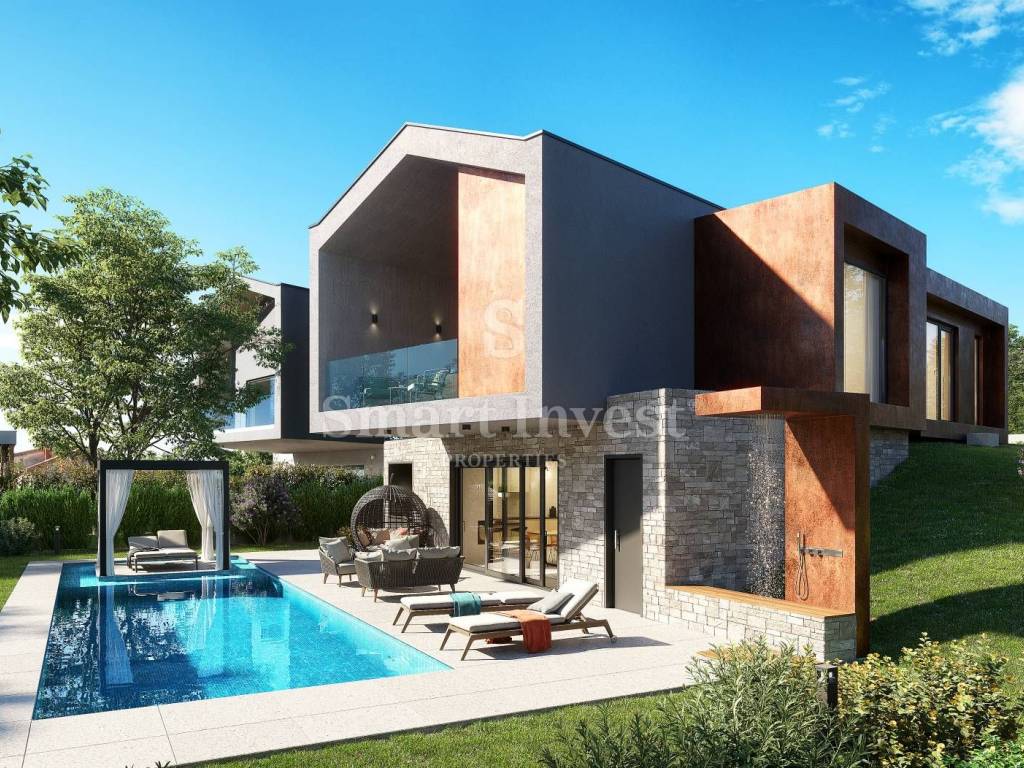 For sale is an exclusive designer villa with a wellness, heated swimming pool and sea view, on a great quiet location 13 km away from the sea and the center Poreč. The construction starts in October 2022, and the scheduled completion date is in May 2023.
