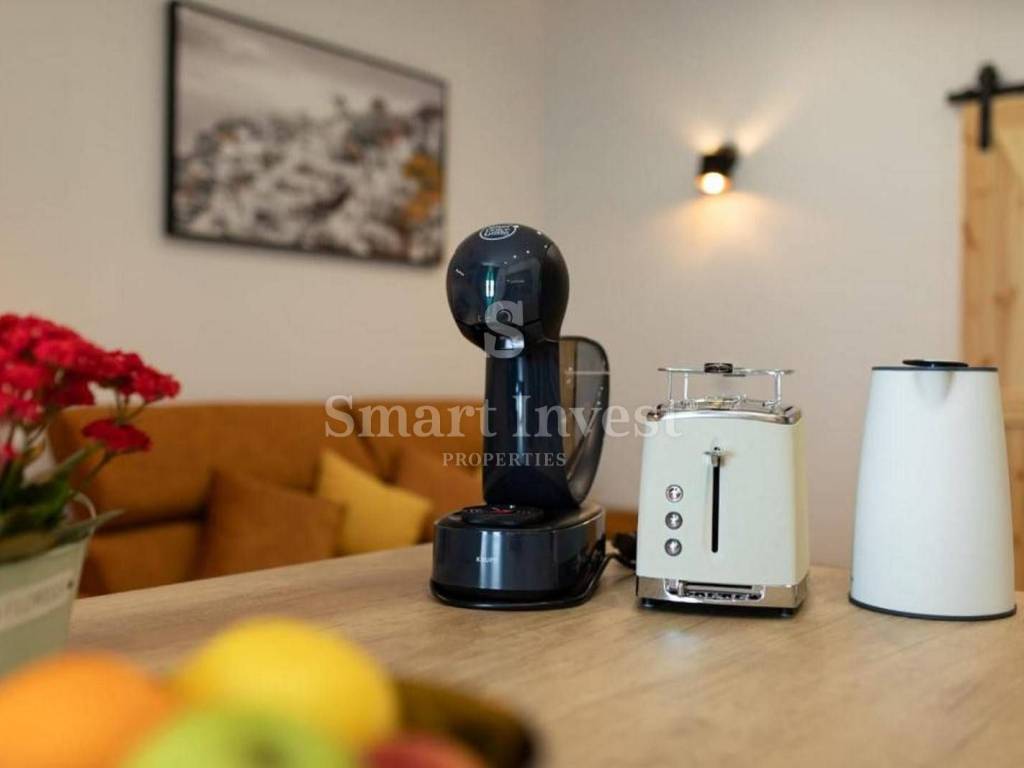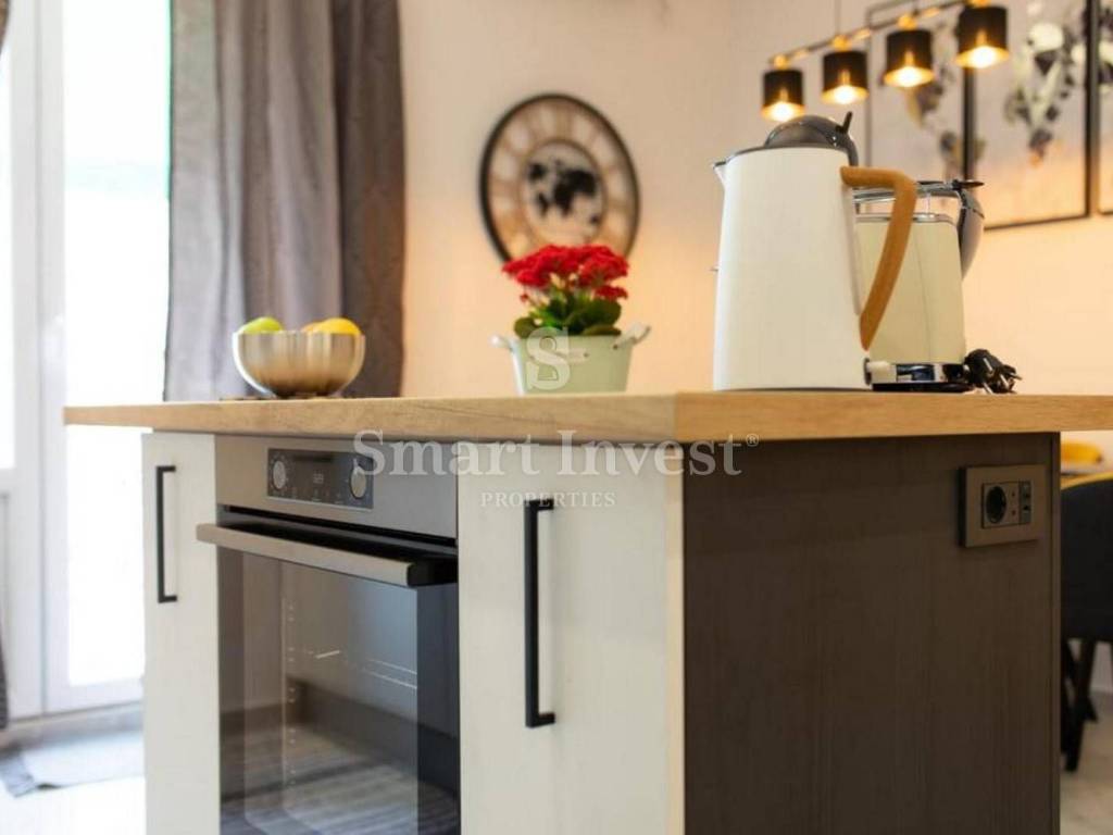 The apartment is situated on the 3rd floor and consists of one bedroom, kitchen with living room, bathroom and two balconies with beautiful sea views.