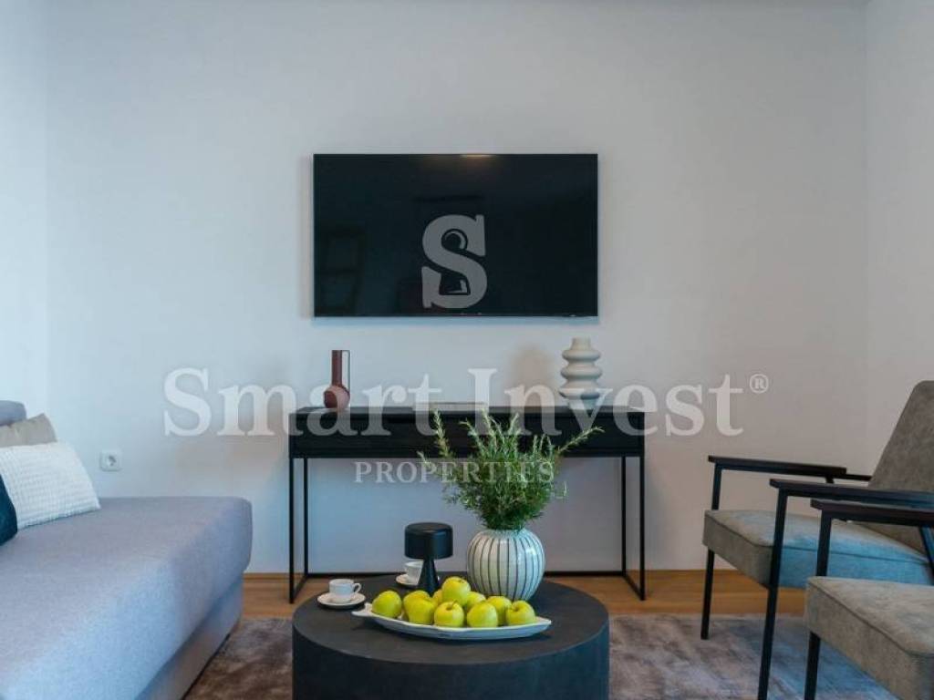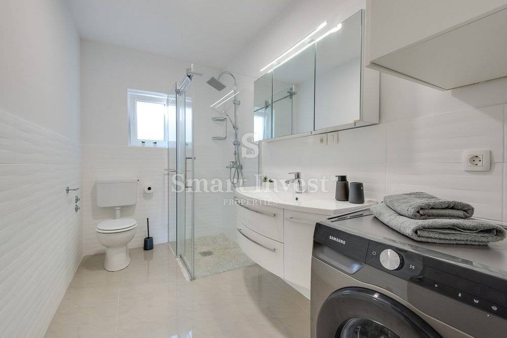It consists of two modern bedrooms, living room, separate kitchen with dining area, bathroom and separate toilet. Has a spacious terrace with lounge area and beautiful sea view, and a garage.
