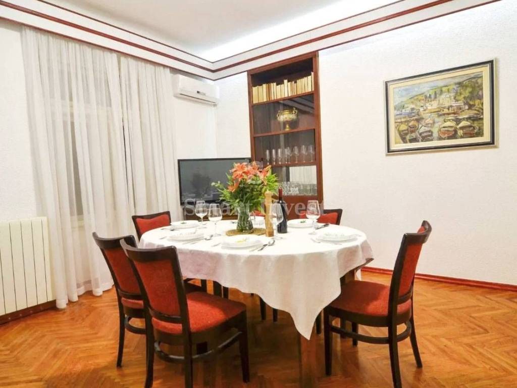 The apartment occupies the ground and the 1st floor of a historical villa. On the ground floor is a spacious hall, kitchen with dining area, living room, bathroom, storage and machinery. Internal stairs lead to the 1st floor where are 3 spacious bedrooms, two of which have balconies, bathroom and corridor. Has a central heating, air-conditioning.