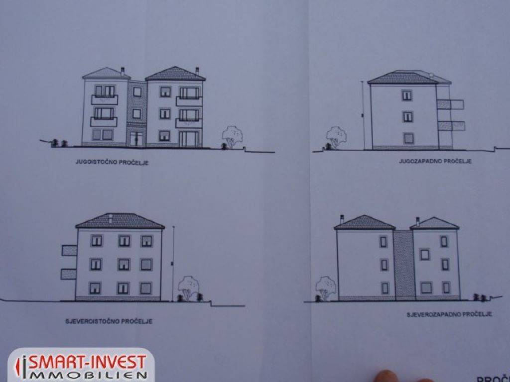 ZAMET, građevinsko zemljište od 1100 m2 s lokacijskom dozvolom za kuću sa 4 stana - tri stana po 55 m2 i jedan stan od 82 m2.