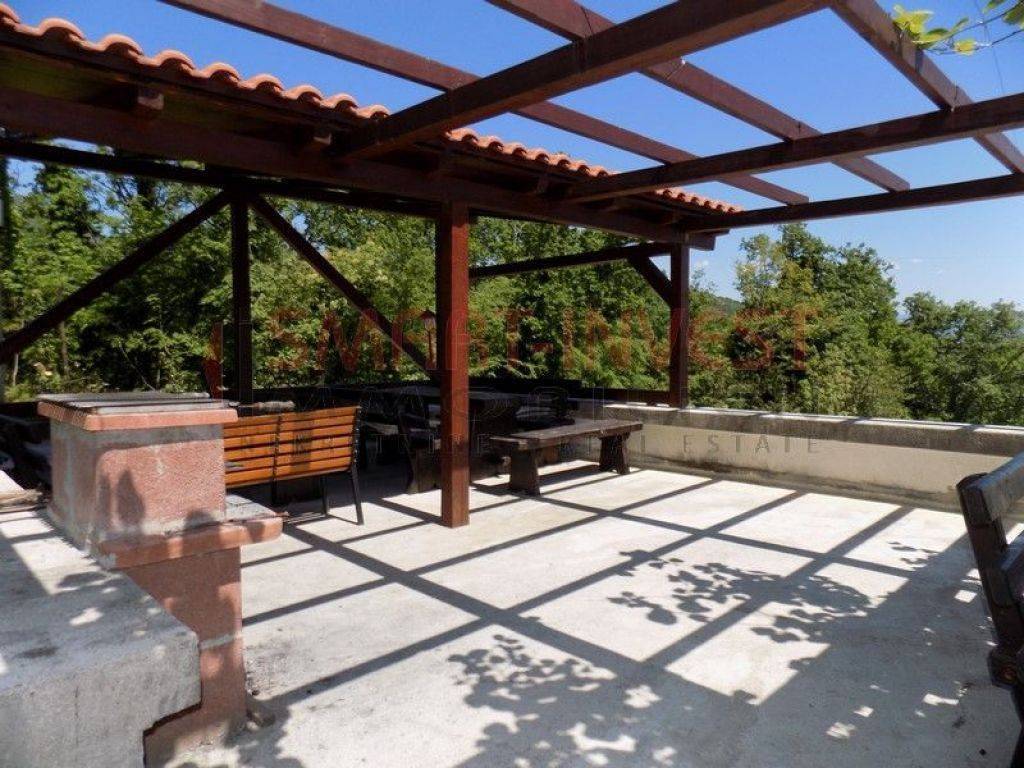 LOVRAN, apartmanska kuća od 360 m2 koja se sastoji od 7 novouređenih i namještenih apartmana s pripadajućim terasama ili balkonom. Kuća se nalazi u mirnom dijelu okružena zelenilom te predivnim pogledom na cijeli Kvarner, ima veliku uređenu okućnicu od 1.300 m2 s prostorom za druženje uz roštilj te veliki parking.