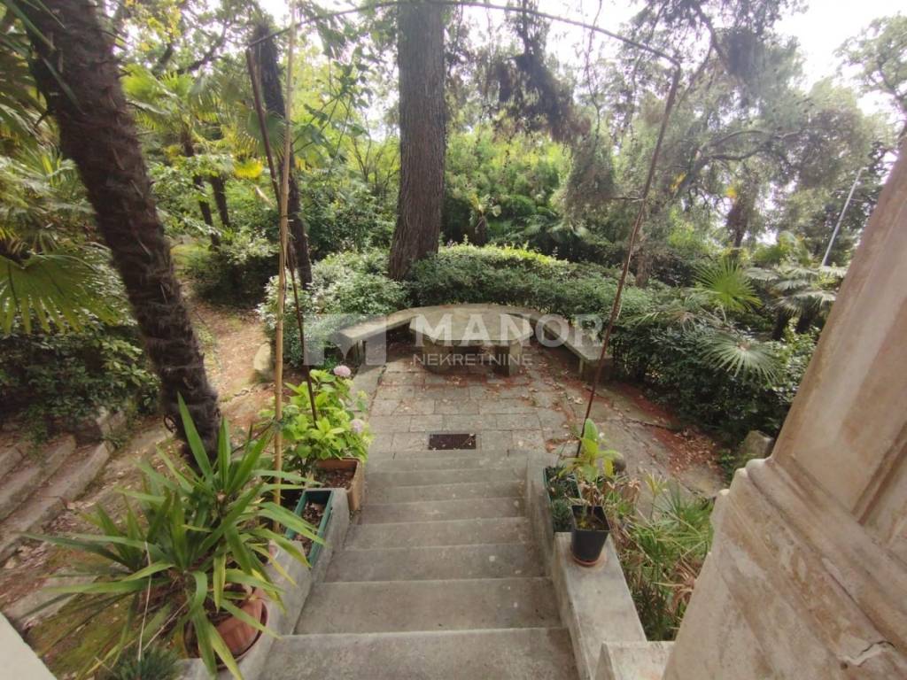 Manor presents a comfortable, unique 3-bedroom + dining room apartment of 244 m located on the ground floor of an Austro-Hungarian villa near the sea. The apartment consists of a hallway, two bathrooms (one en-suite), a kitchen with dining area, living room, three bedrooms, a loggia, and a terrace of 16 m. In the apartments basement, accessible via an internal staircase, there are three large rooms currently used as laundry and boiler rooms, which can be converted into a tavern, gym, sauna, wine cellar, or similar. The villa is surrounded by a beautiful garden full of greenery and palm trees. There is an option to purchase the entire villa. A unique property in an exceptional location offering peace and privacy just a few steps from the beach.
