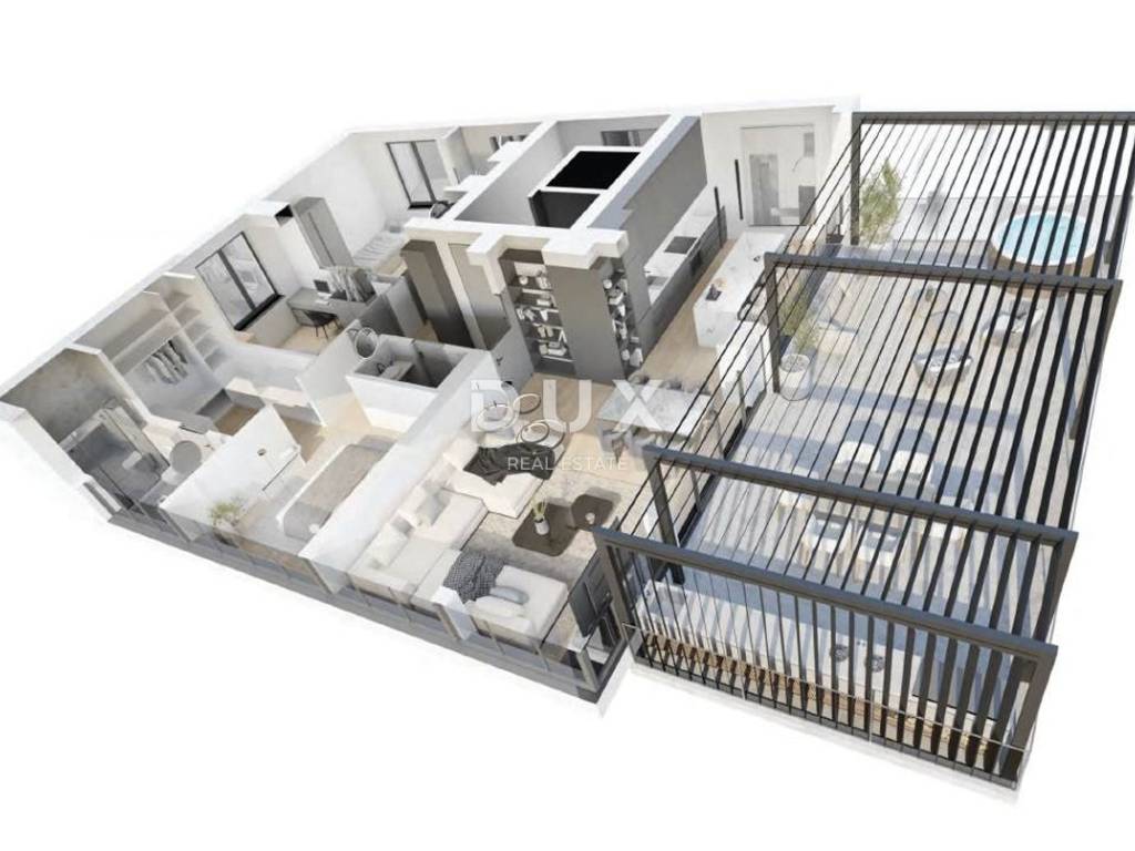 It consists of a living room with dining room and kitchen, three bedrooms, one of which has a separate dressing room, two bathrooms, an additional toilet, a hallway and a large covered terrace (60.27 m2) which provides an ideal space for relaxation and socializing, with a sauna and jacuzzi.